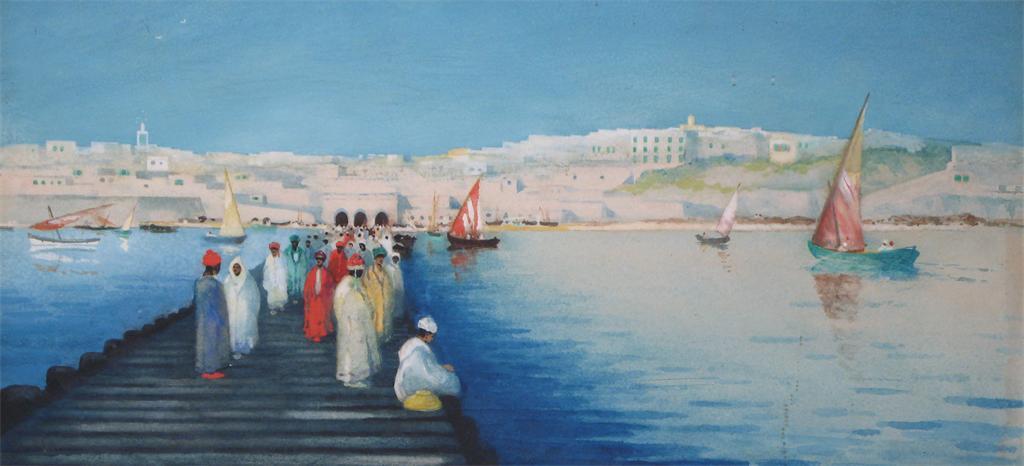 Hans Jacob Hansen (British 20th Century) Busy coastal scene in Algeria Signed Watercolour 26...