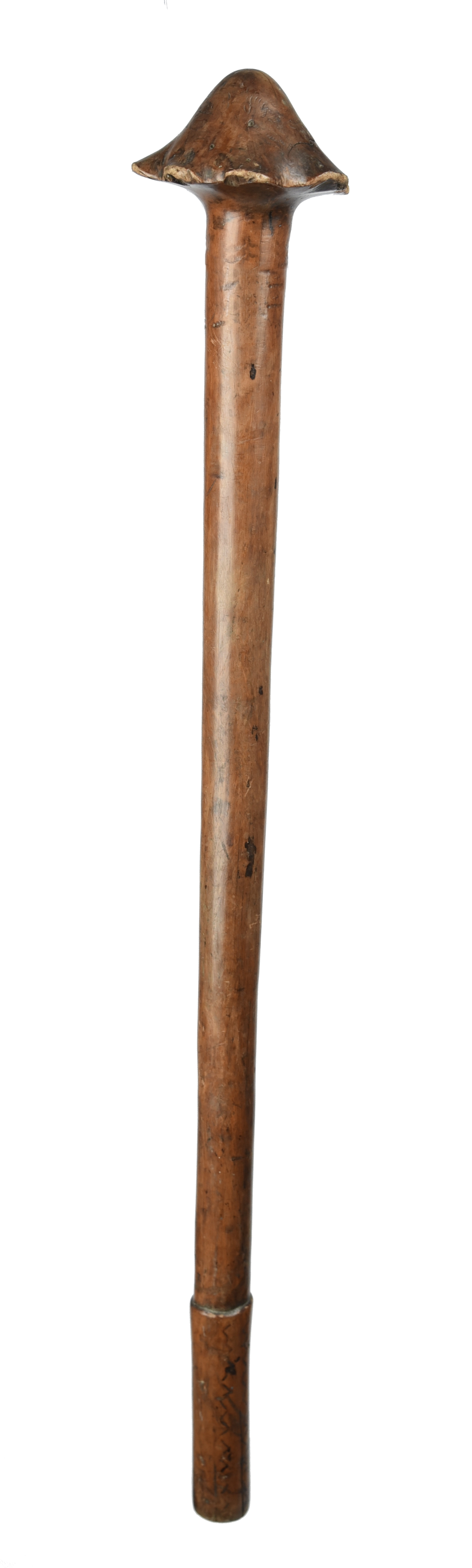 with a wavy edge domed head and a raised grip with incised zig-zag and dash decoration,