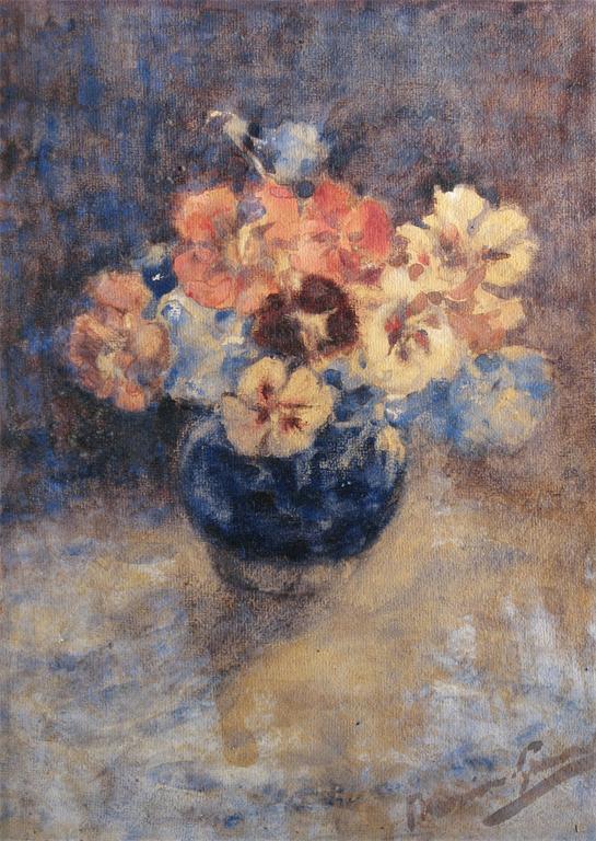 Continental School early 20th Century Still life of flowers in a blue vase Signed indistinctly ...