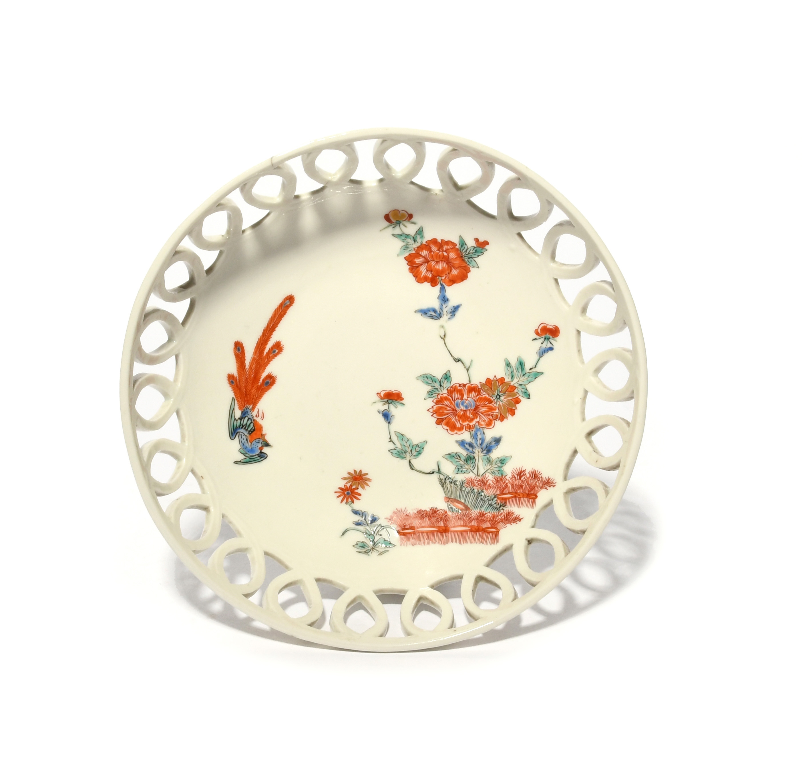 A rare Japanese reticulated bowl, 18th century, possibly Dutch-decorated in the Kakiemon palette,