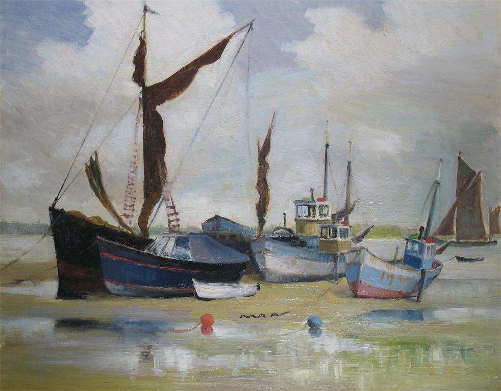 Ken Leech (20th Century) Low tide on the River Orwell Signed
