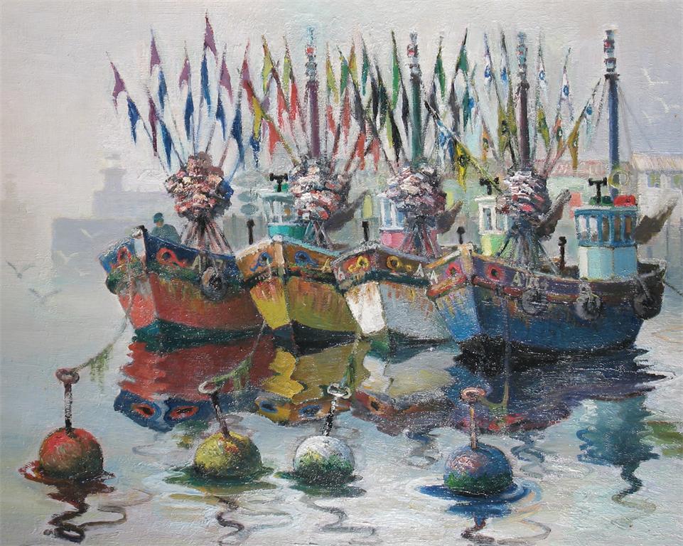Ken Leech (20th Century) Crabbers, Audierne, Brittany Signed, dated '89 and titled verso Oil on board 52 x 64cm; 20 x 25in