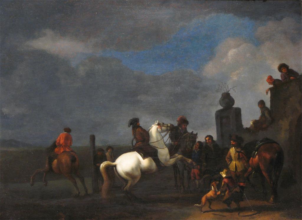 Circle of Philips Wouverman A hunting party in a landscape Oil on panel 33 x 45cm; 13 x 17in