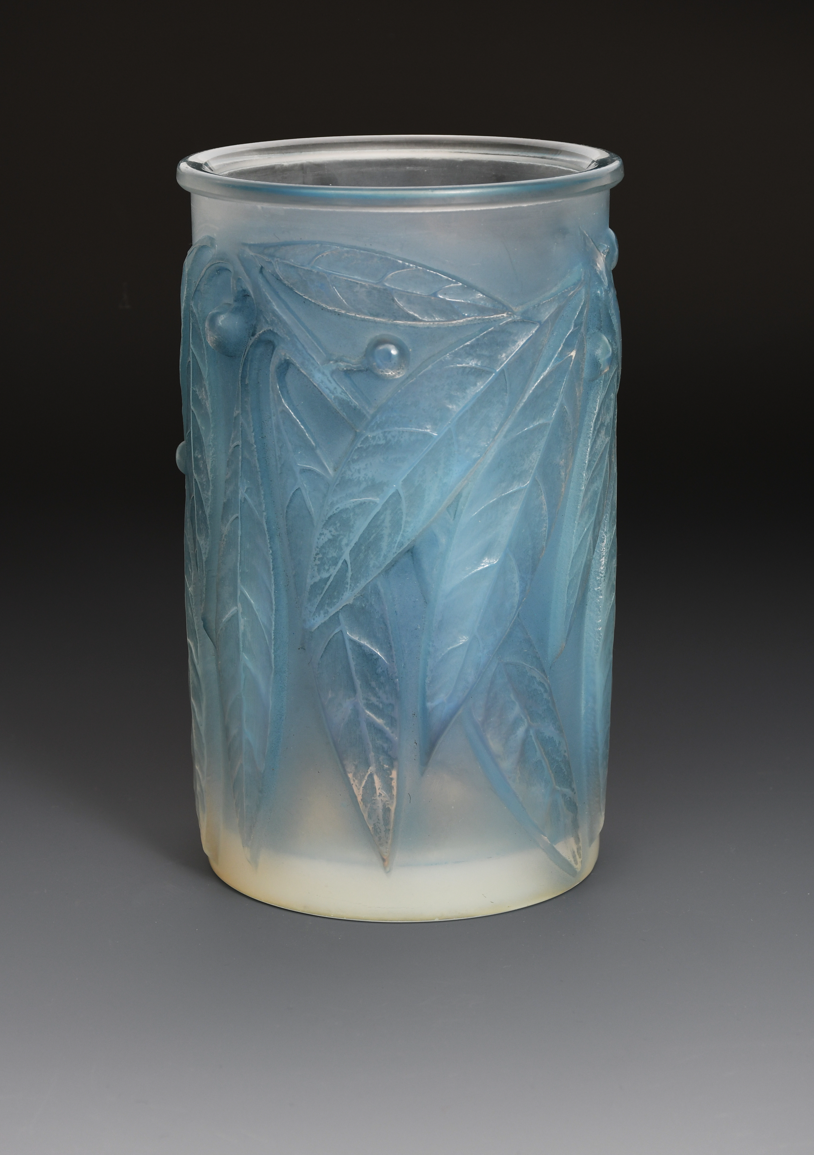 'Laurier' no.947 a Lalique opalescent glass vase designed by Rene Lalique, wheel cut R Lalique