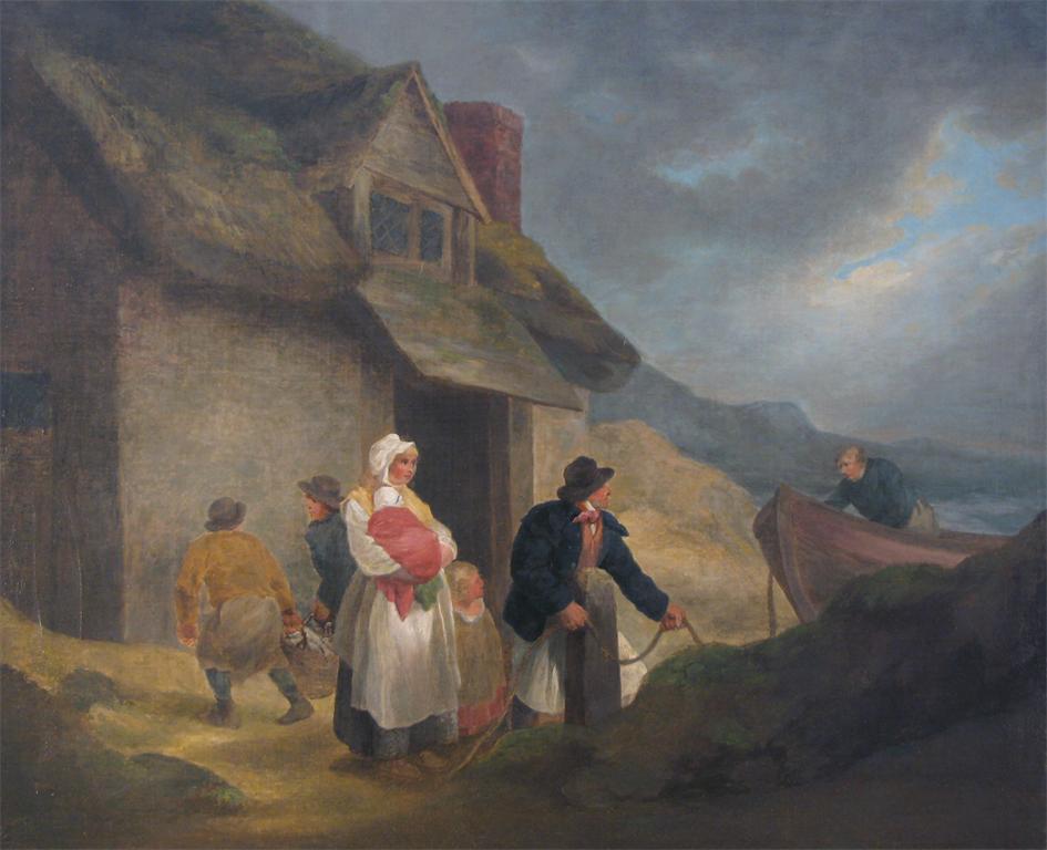 George Morland (1763-1804) Villagers by a coastal cottage Oil on canvas 61 x 76cm; 24 x 30in