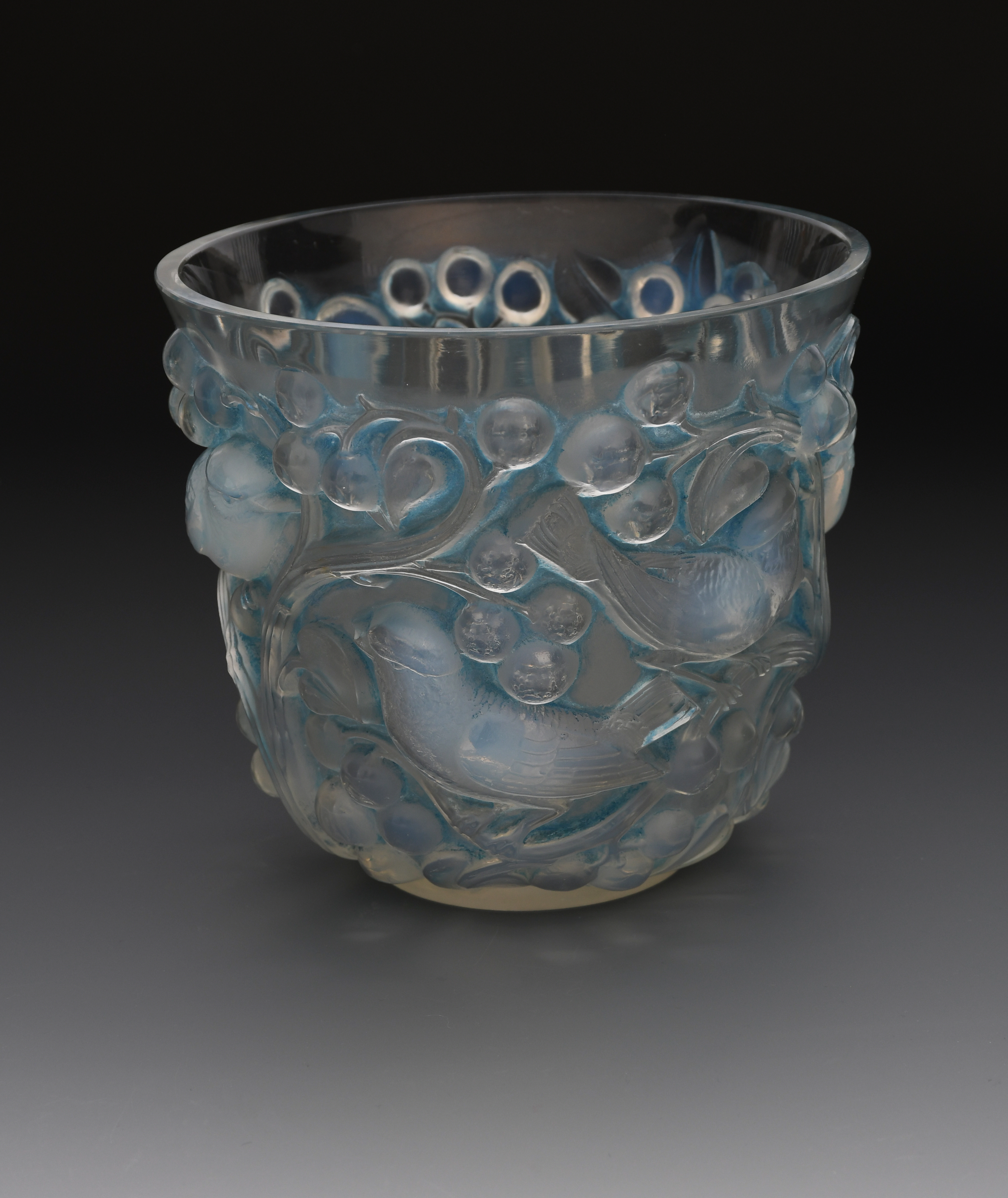 'Avallon' no.986 a Lalique opalescent glass vase designed by Rene Lalique, stencil R Lalique France,