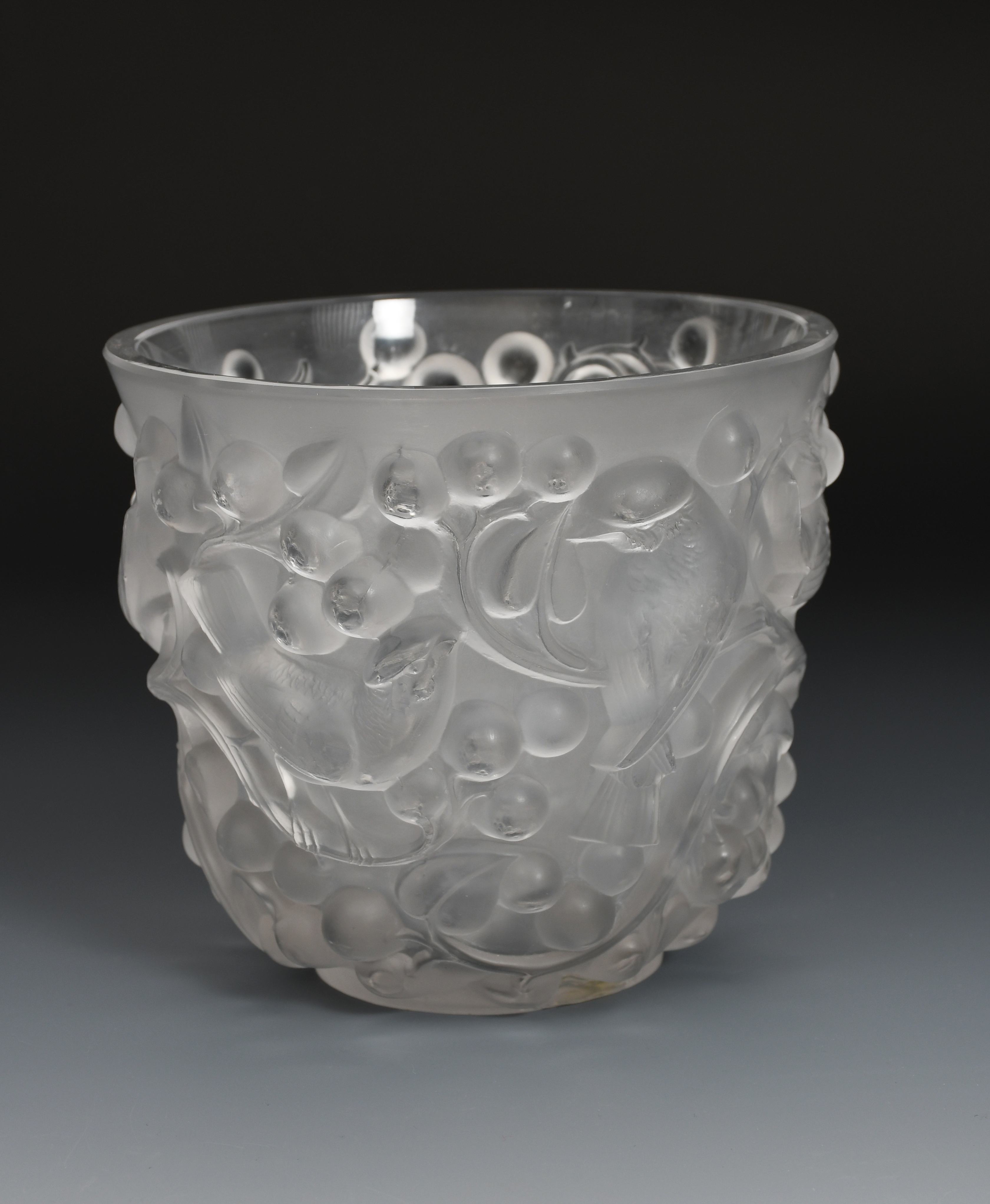 'Avallon' no.986 a Lalique clear and frosted glass vase designed by Rene Lalique, stencil R Lalique