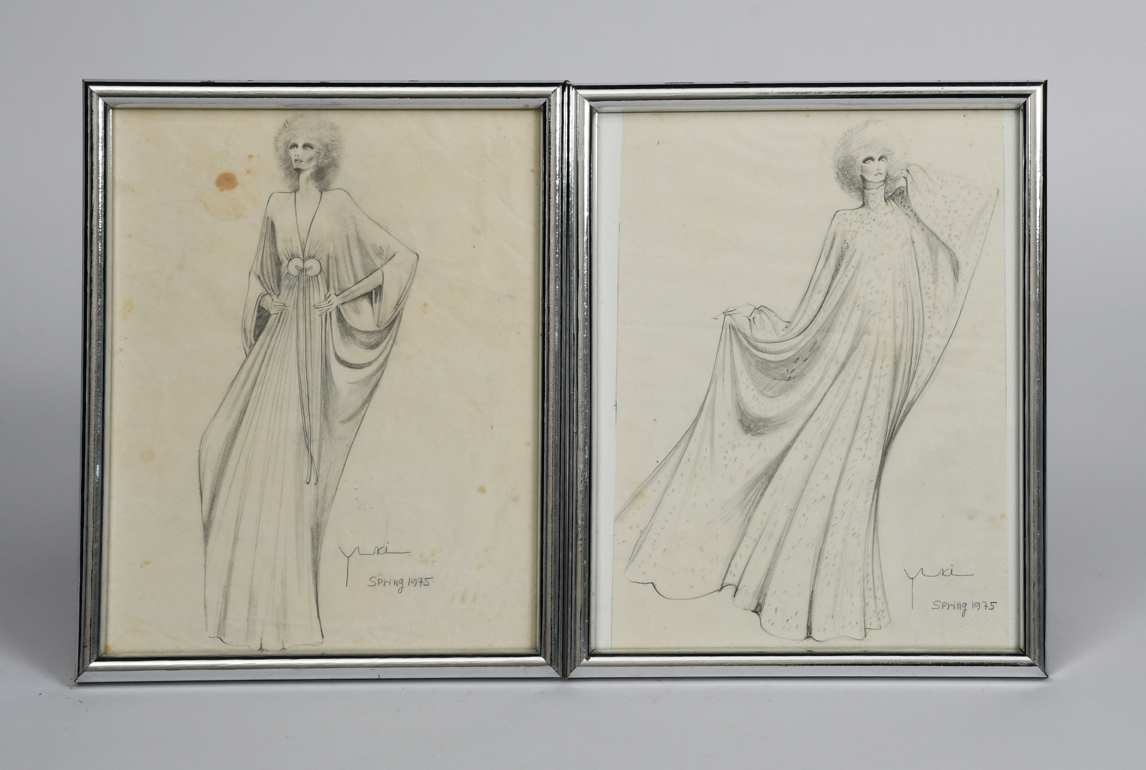 two pencil fashion designs, both framed