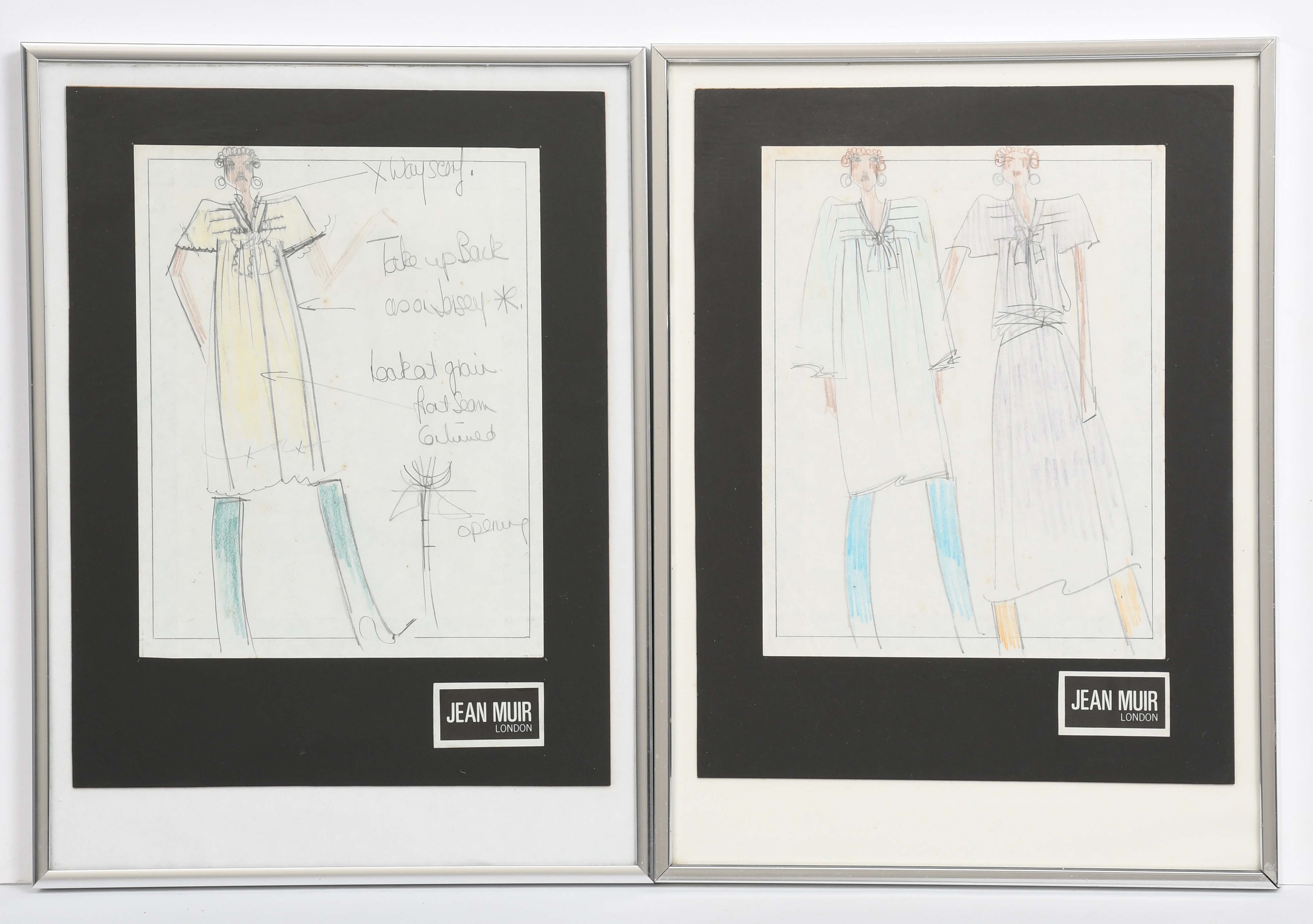pencil and coloured pencil on paper fashion design, another two similar, all framed