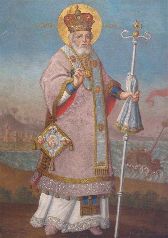 Greek/Russian School 19th Century Portrait of a Saint Signed indistinctly and dated '59 Oil on...