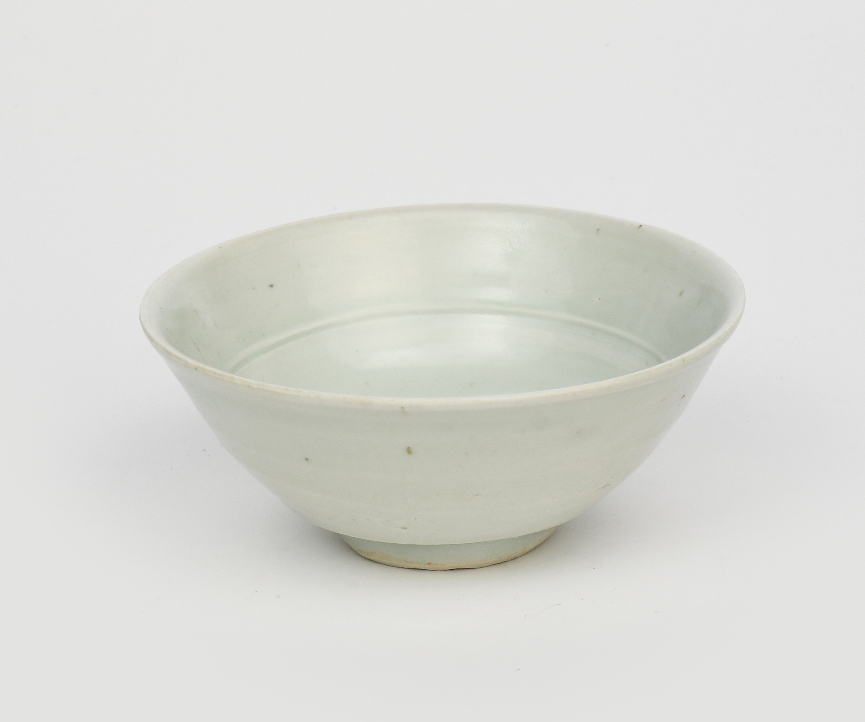a porcelain footed bowl, covered with a pale ash glaze,