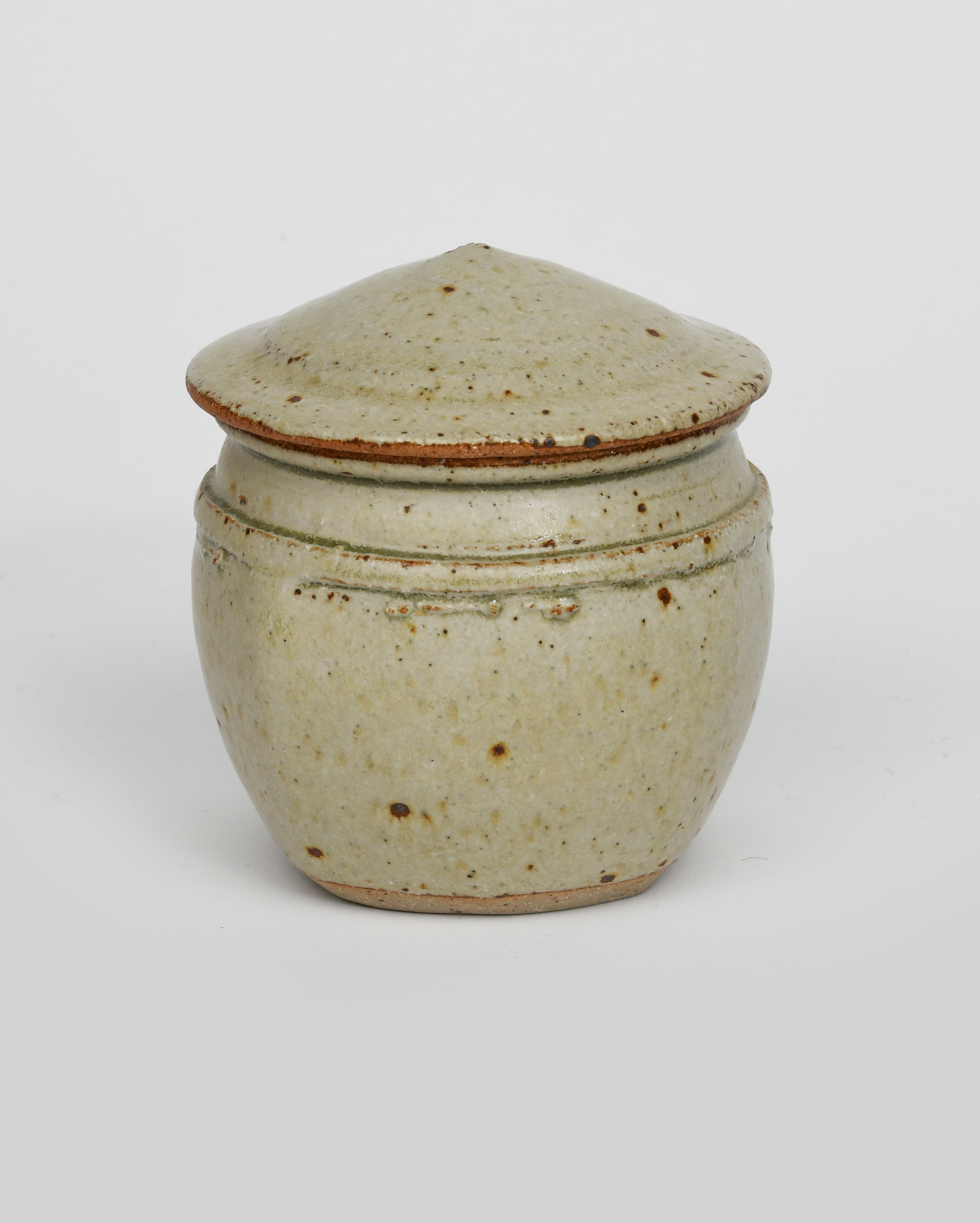 a salt-glazed stoneware small square jar and cover, covered to the foot