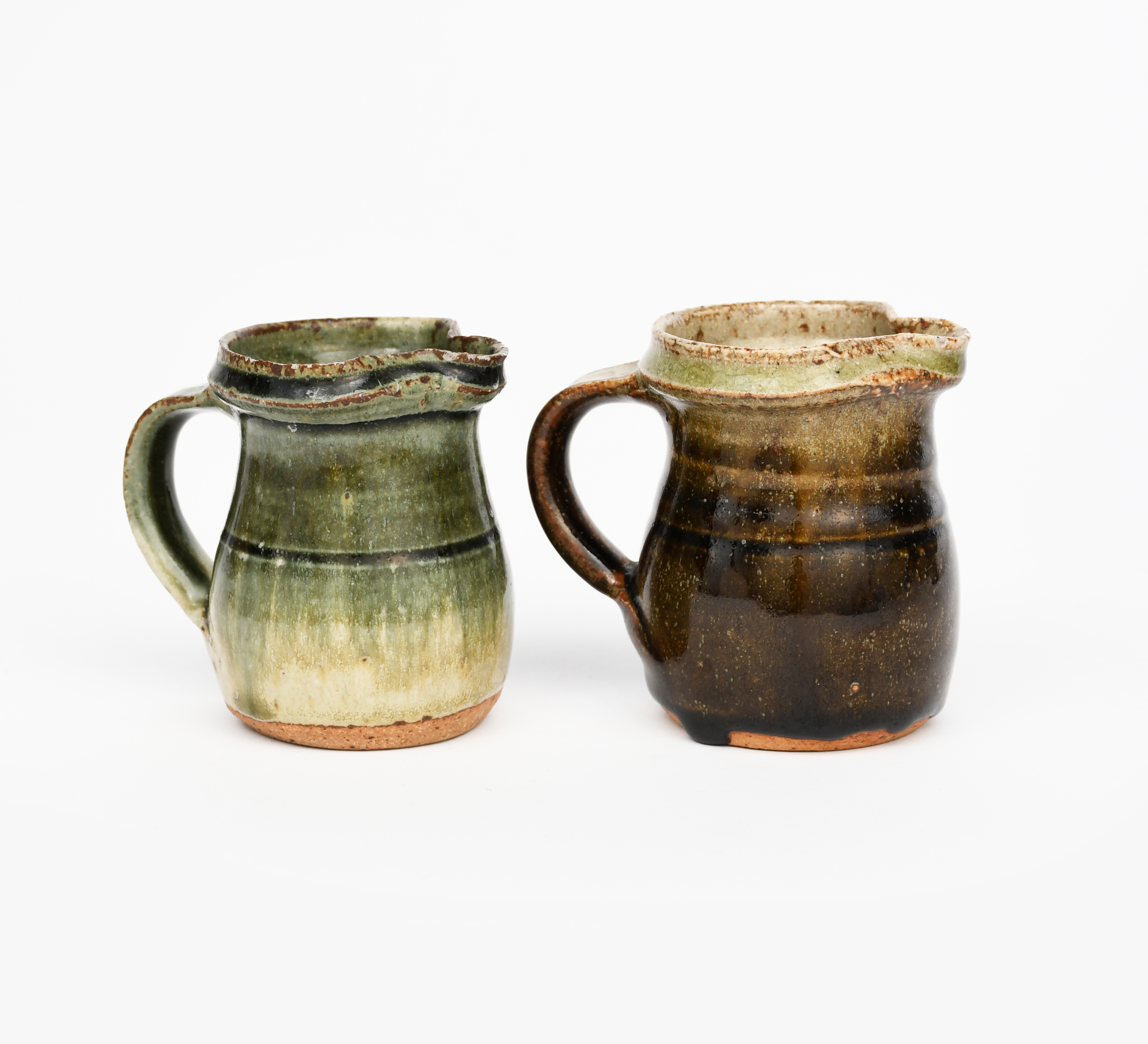 a small jug, covered in an ash glaze under iron, and another similar,