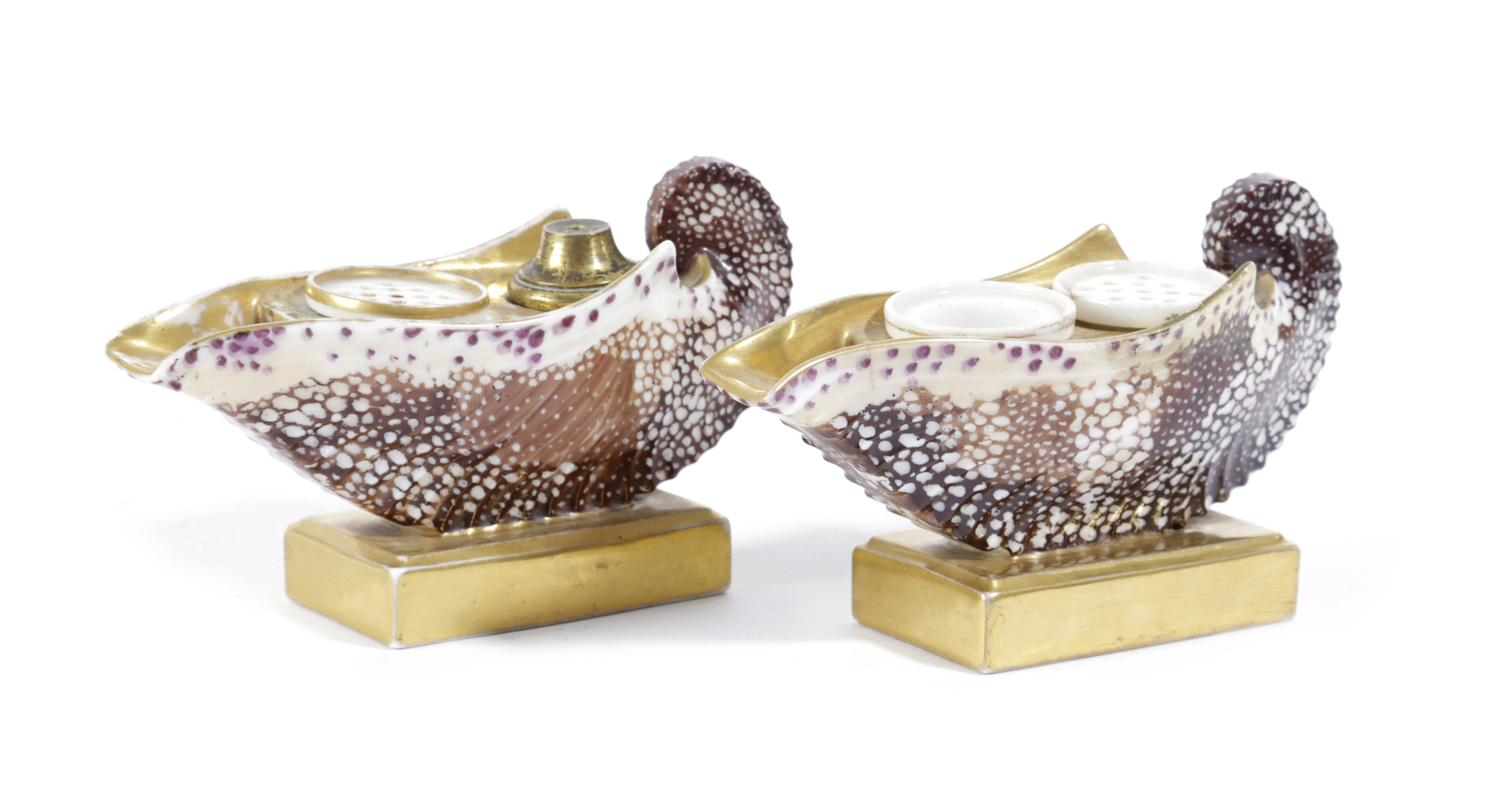 A PAIR OF PARIS PORCELAIN SHELL-SHAPED INKWELLS