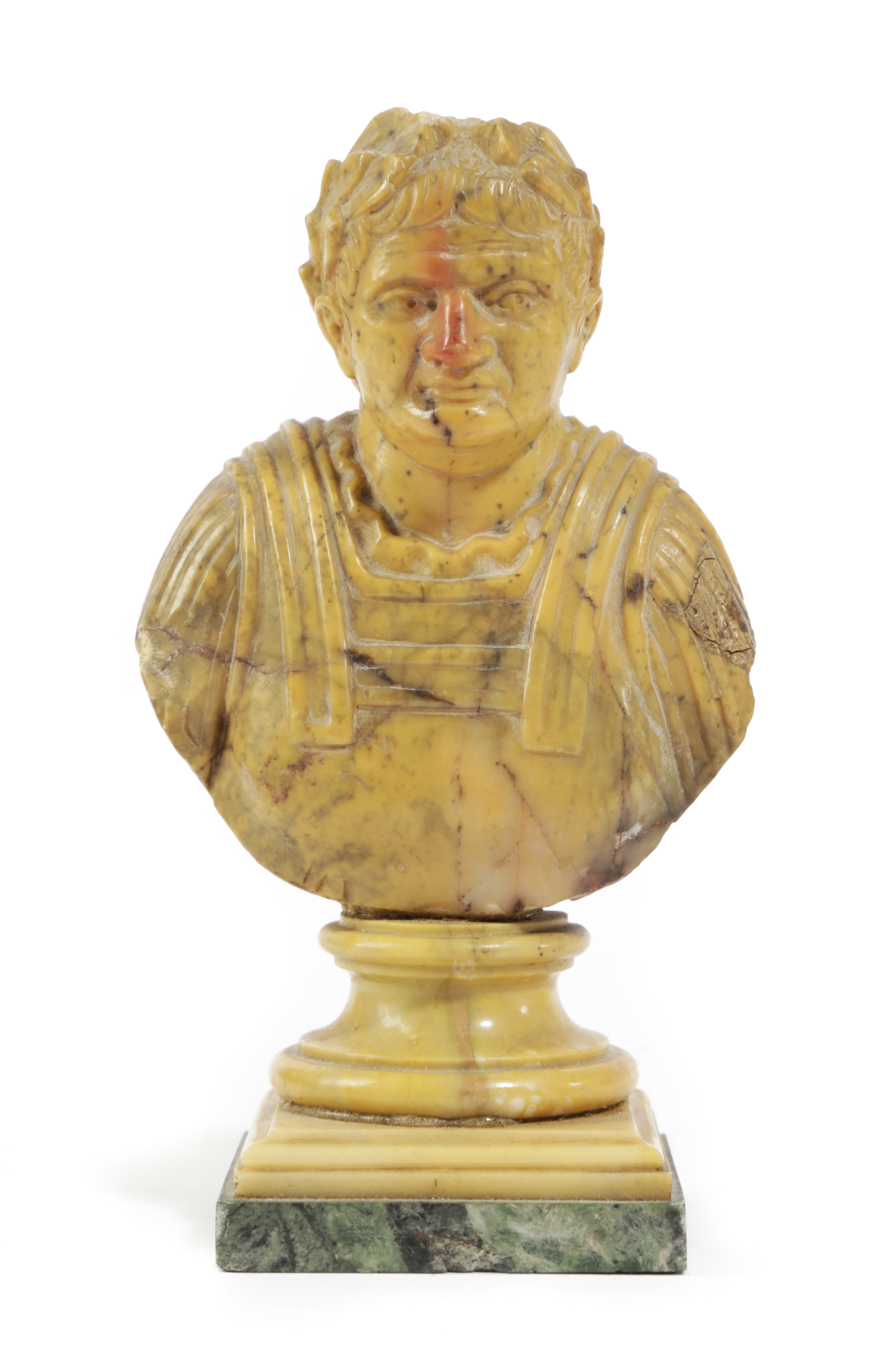 AN ITALIAN GIALLO ANTICO GRAND TOUR BUST OF THE ROMAN EMPEROR VESPASIAN