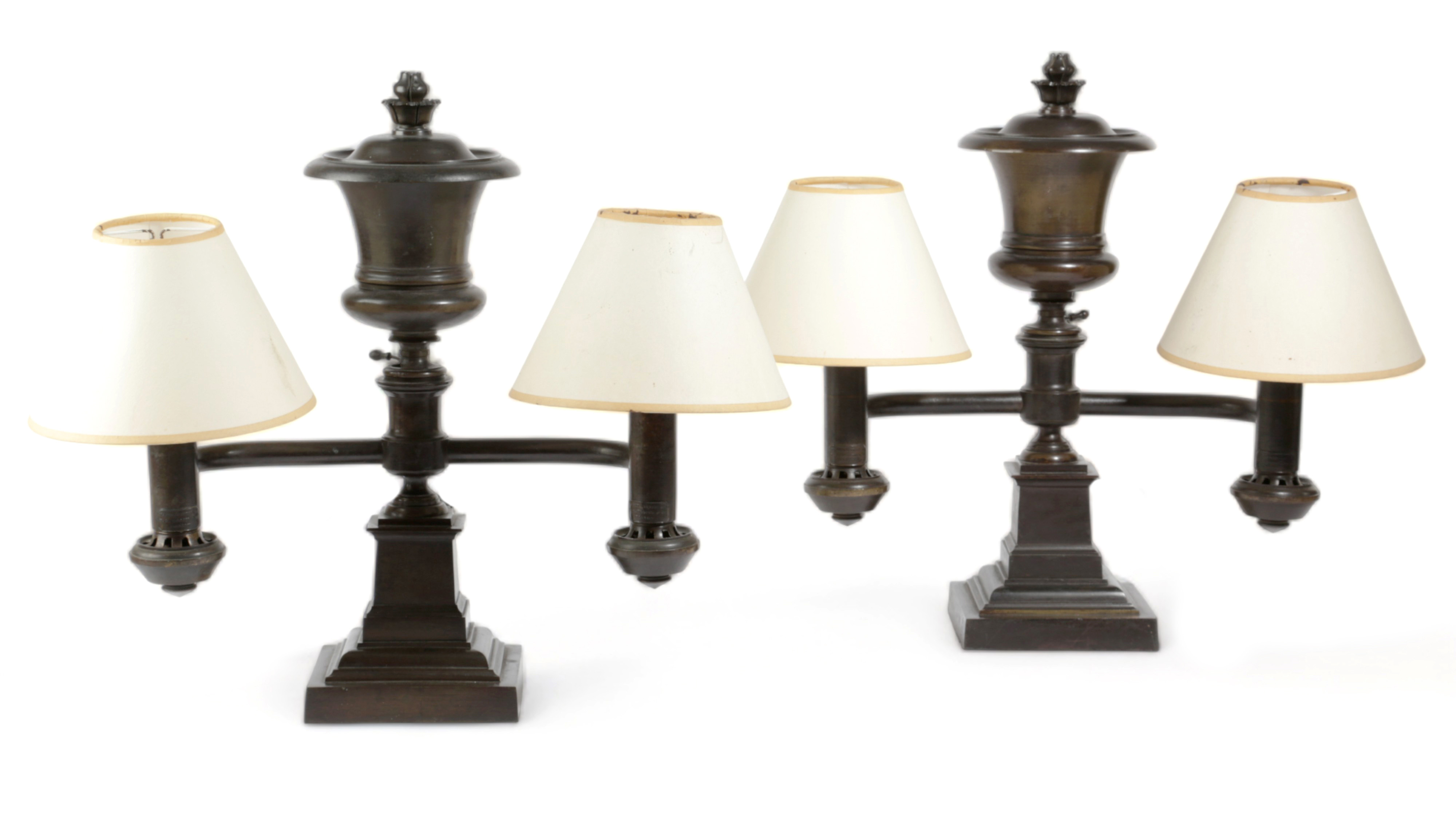 A RARE PAIR OF WILLIAM IV AMERICAN BRONZE TWIN-LIGHT ARGAND LAMPS