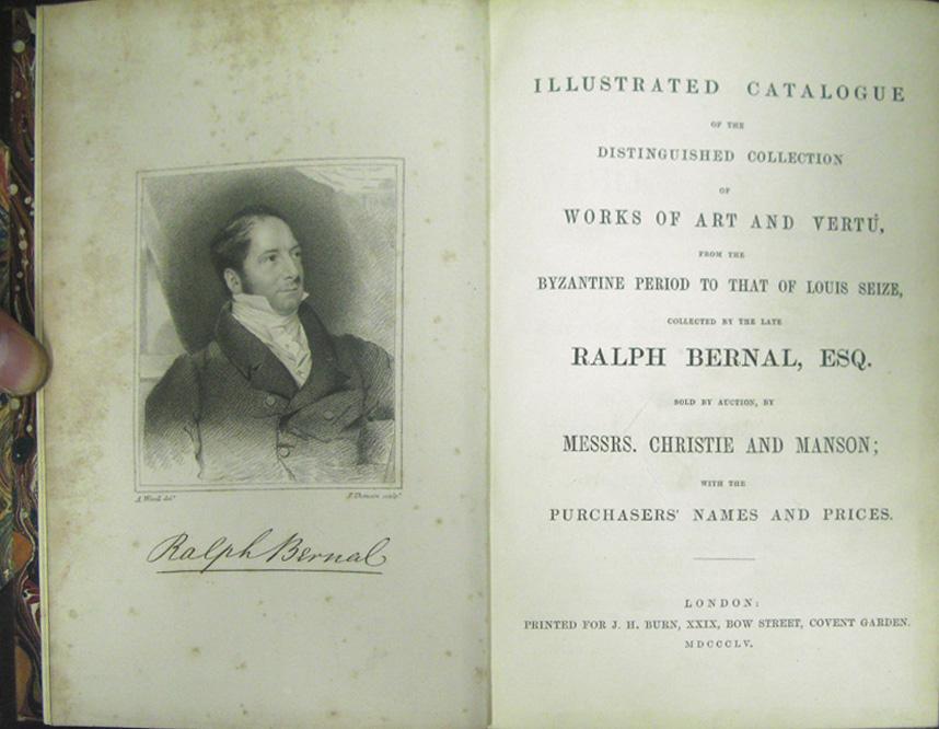 Christie and Manson: Illustrated catalogue of the distinguished collection of Works of Art and Vertu......collected by the late Ralph Bernal, March 5th 1855, half leather bound with marble boards.