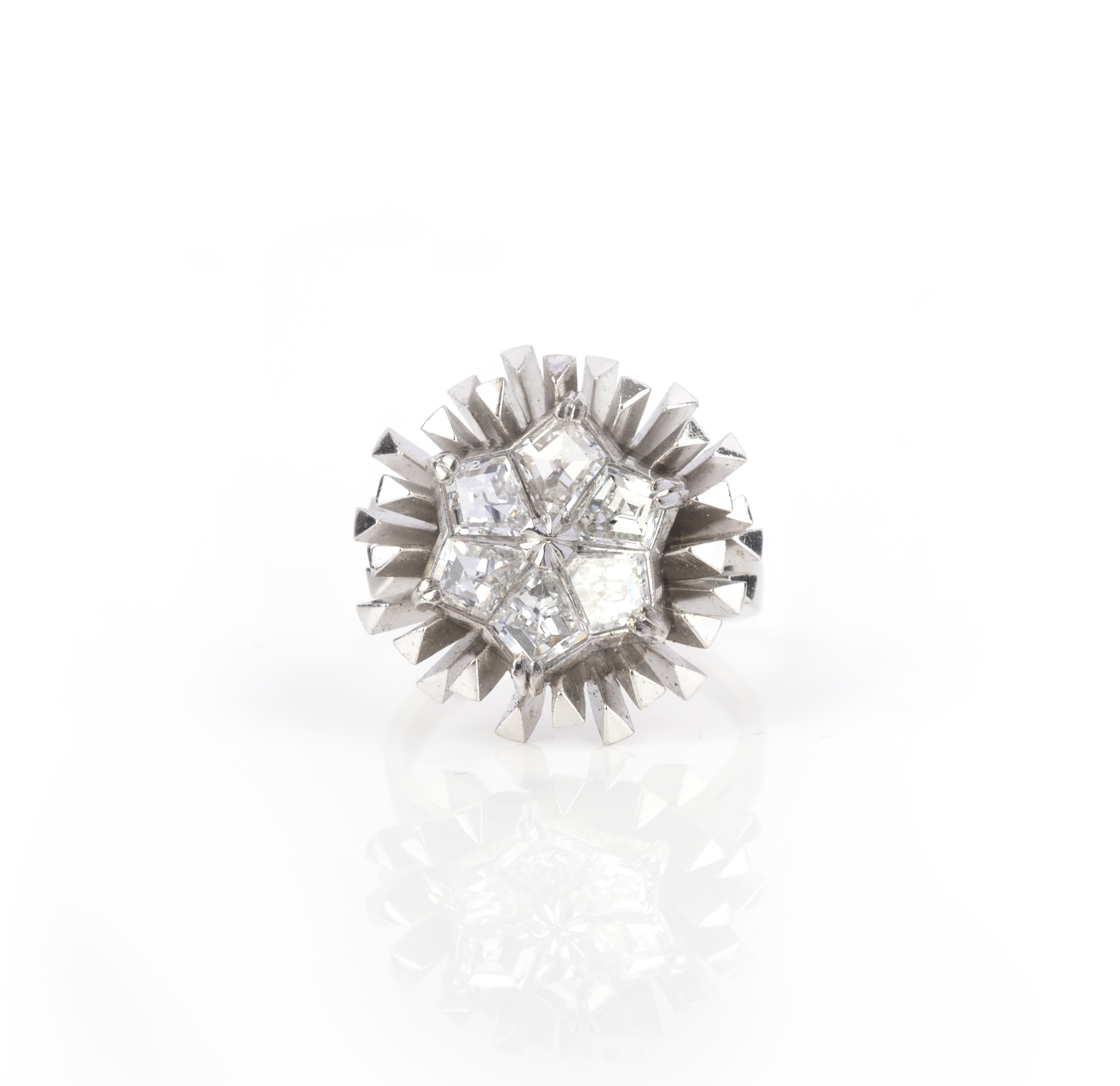 Φ John Donald, a diamond ring, circa 1965, centring on a star motif set with six kite-shaped