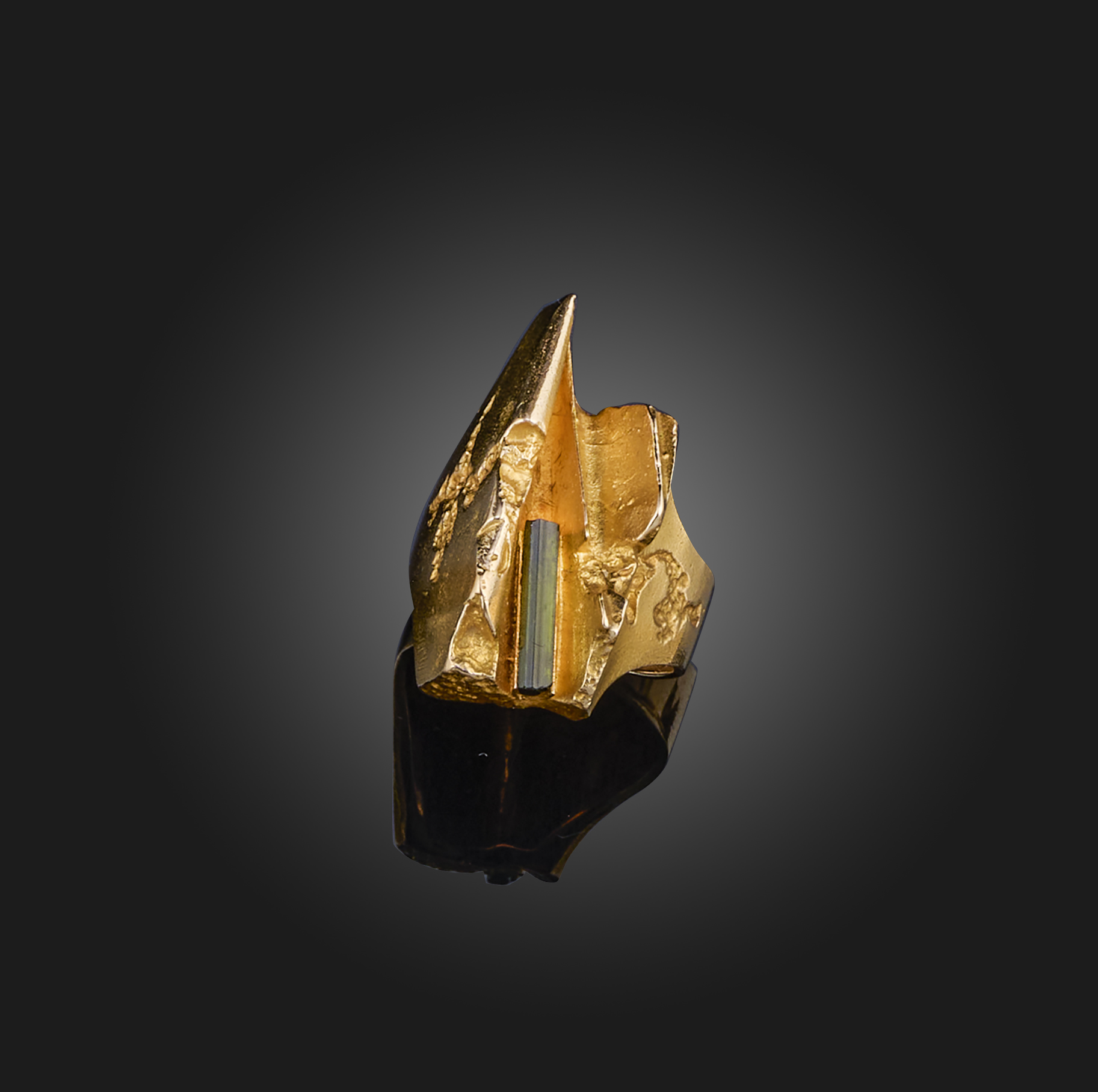 Björn Weckström, and abstract gold ring, set with a tourmaline crystal in 14ct yellow gold, signed