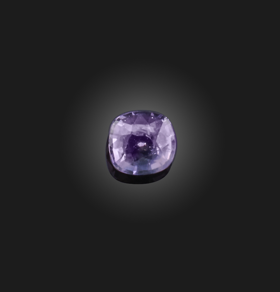 † A loose cushion-shaped purple sapphire, weighing 3.69cts