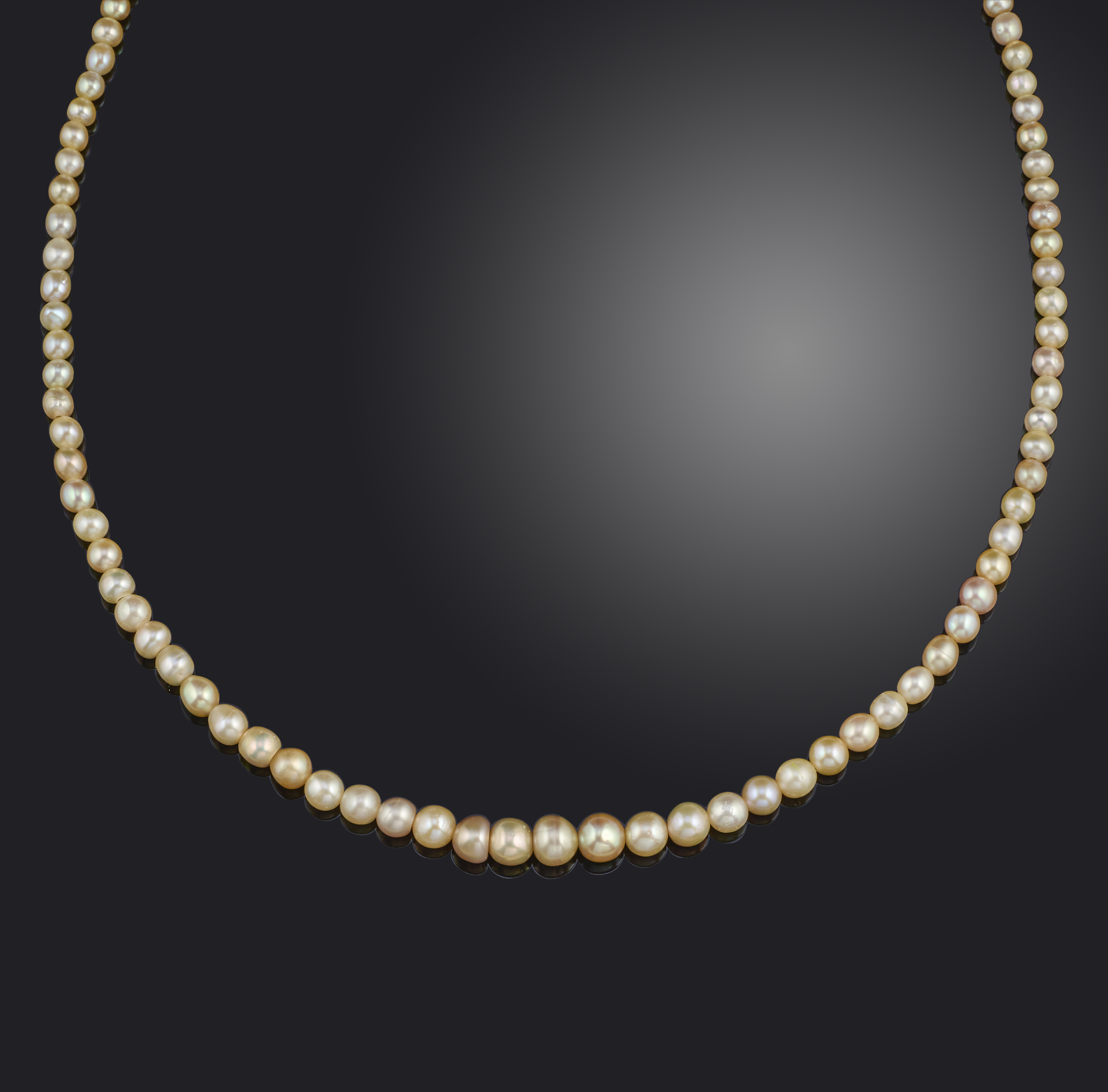 A natural pearl necklace, designed as a single strand of graduated pearls measuring approximately