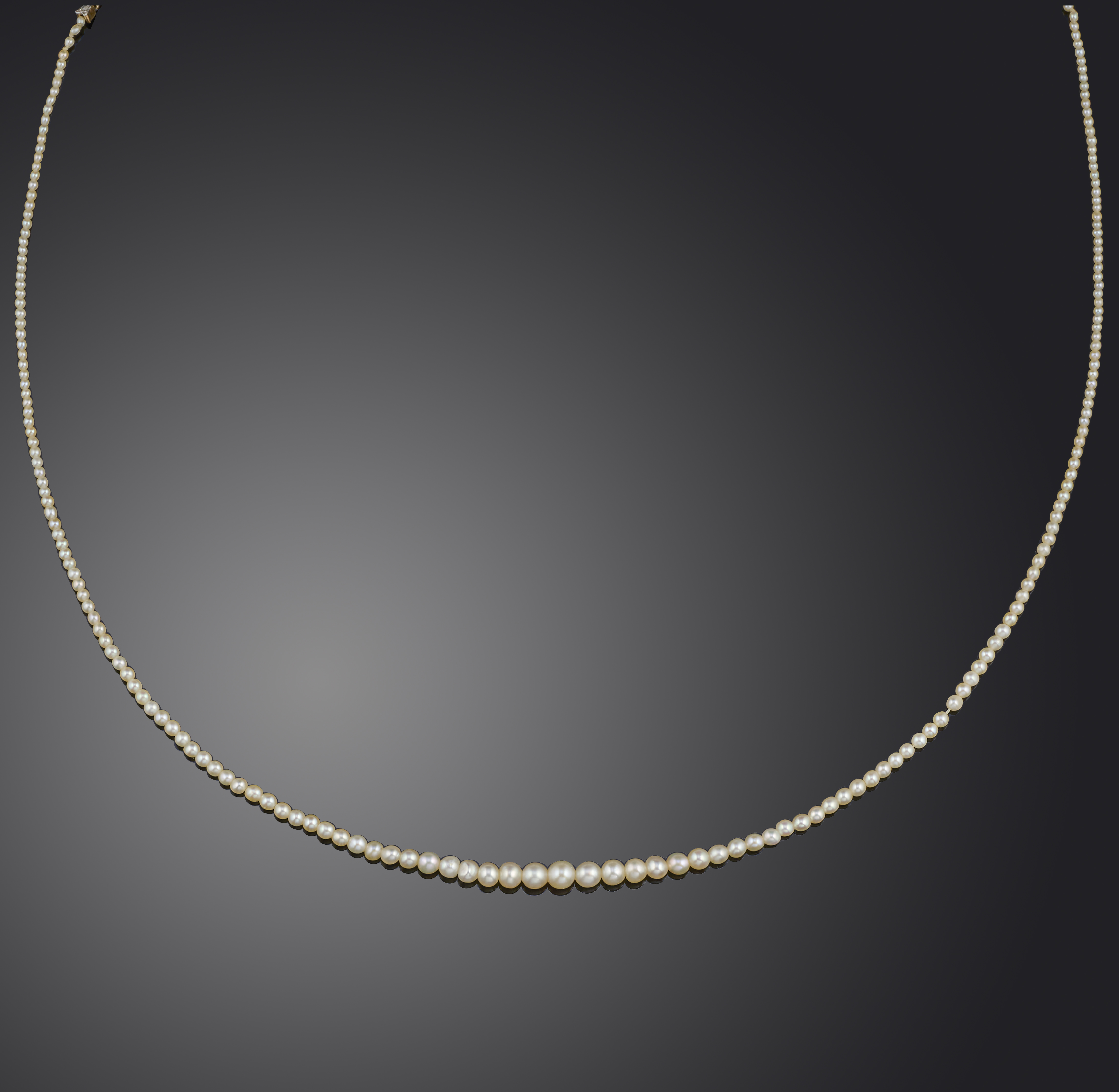 A natural pearl necklace, early 20th century, composed of a single row of graduated natural pearls,
