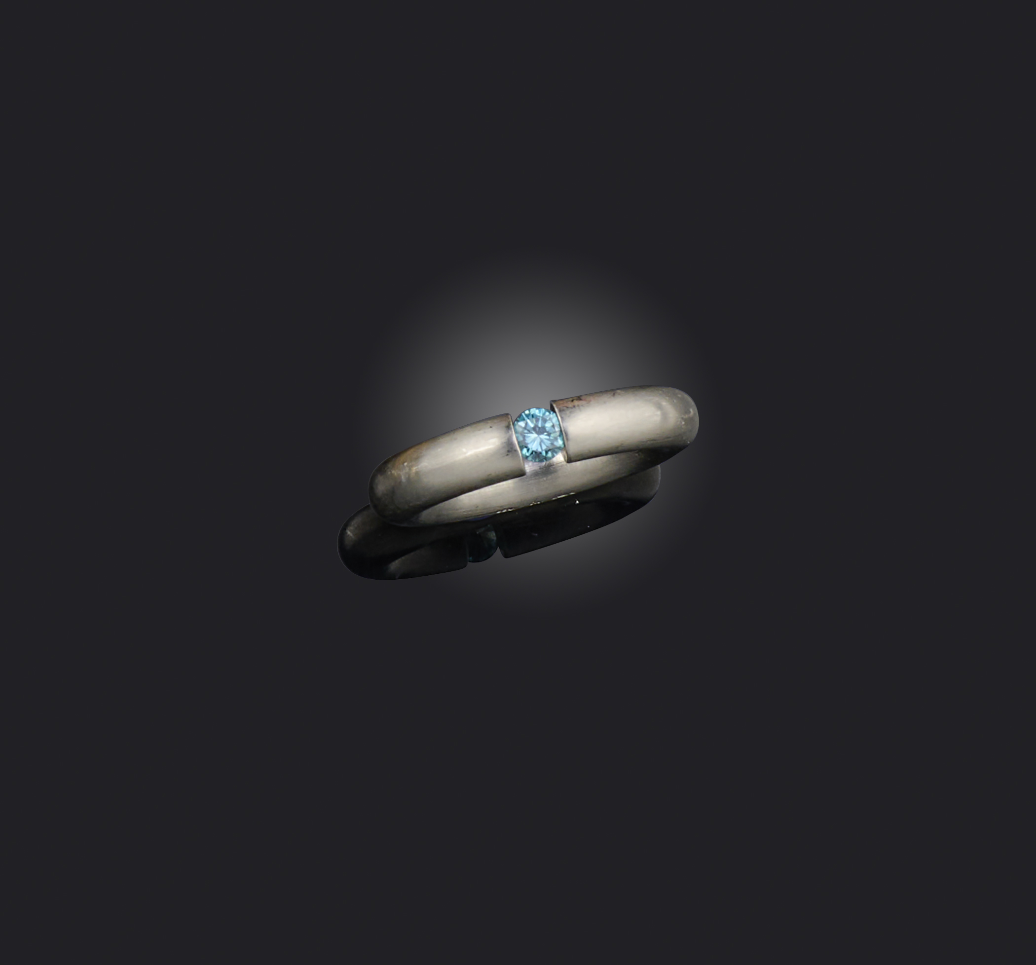 Niessing, a blue diamond 'Spannring' ring, the brilliant-cut blue diamond weighing approximately 0.25 carats, tension-set in thick brushed platinum mount, size M1/2, diamond untested for natural colour origin