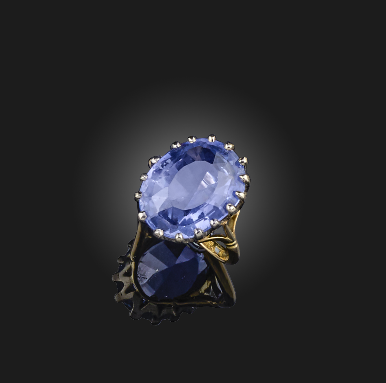 A sapphire solitaire ring, the oval-shaped sapphire weighing 11.83 cts, claw-set in platinum and gold, size N 1/2