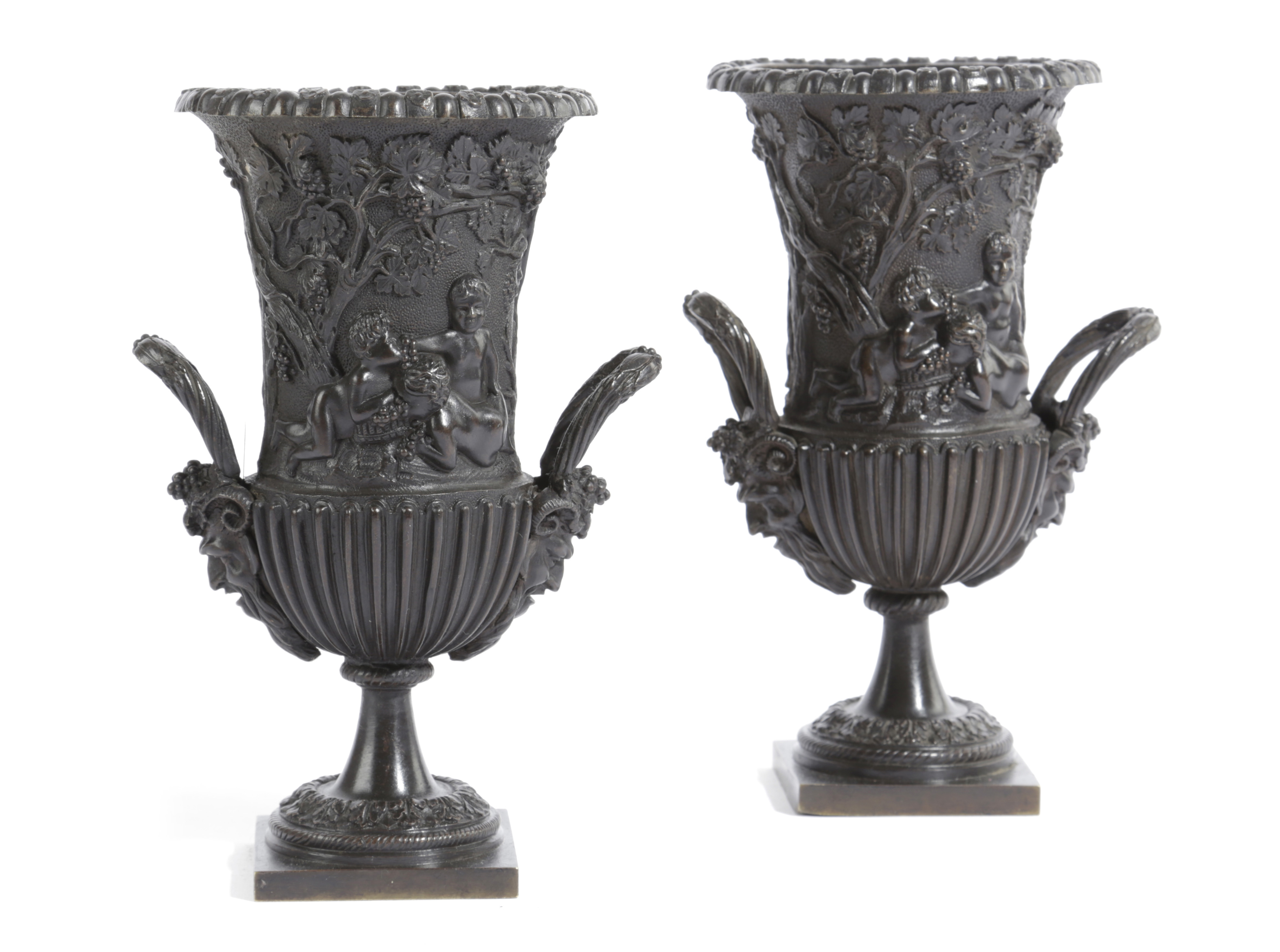 A PAIR OF ITALIAN BRONZE GRAND TOUR VASES