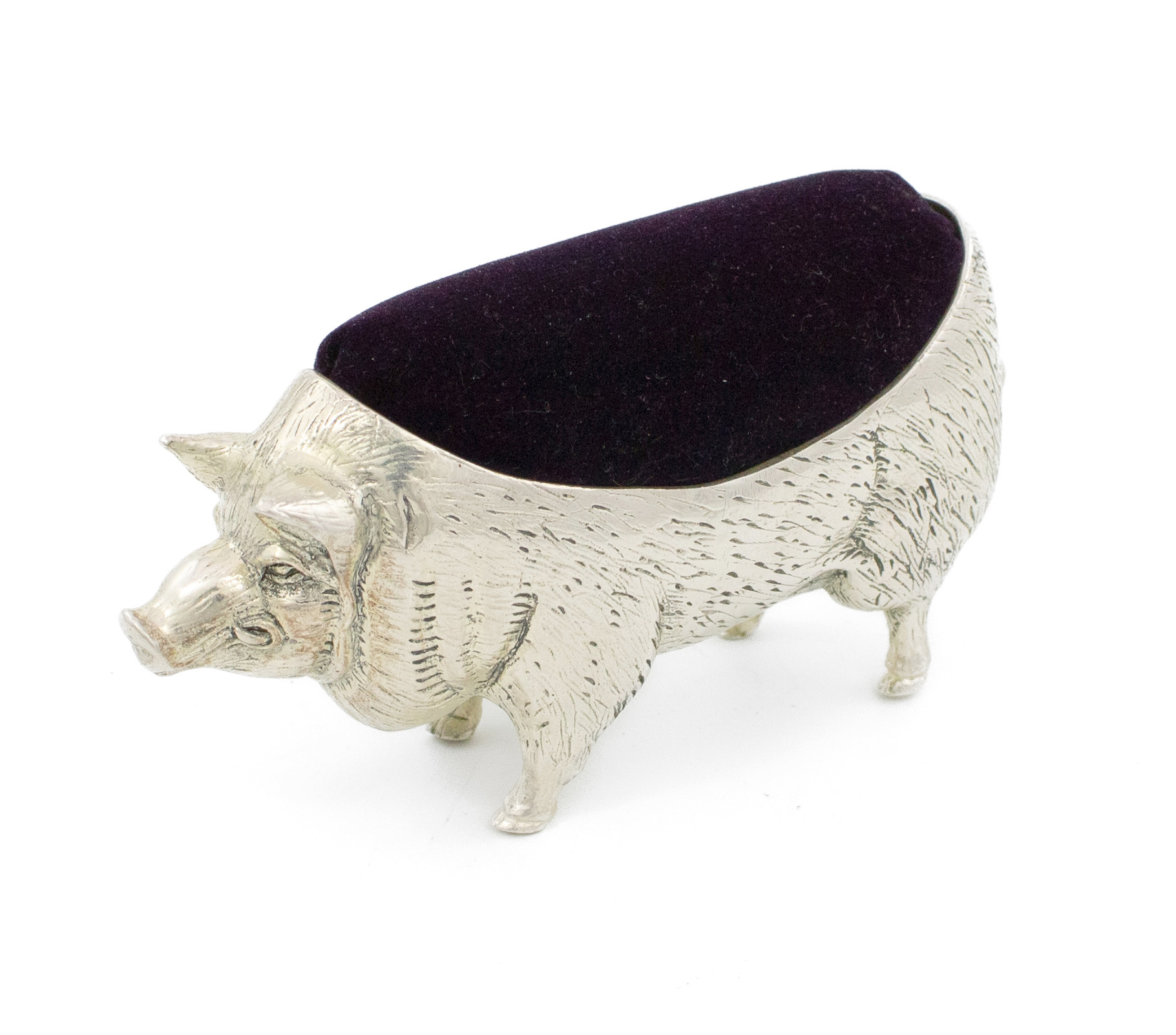 A modern continental silver novelty pig pin cushion,