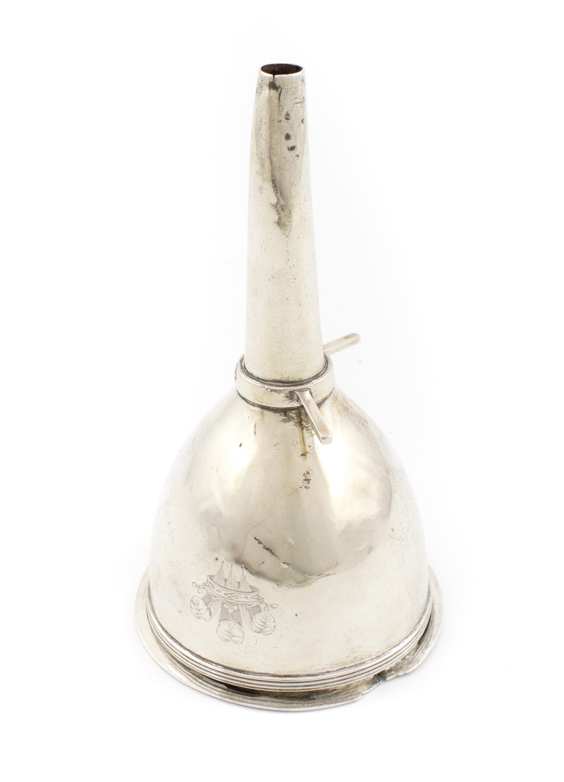 circular form, reeded borders, lacking side clip, with two supporting spikes, (one missing), height 14.2cm, approx. weight 4.4oz.