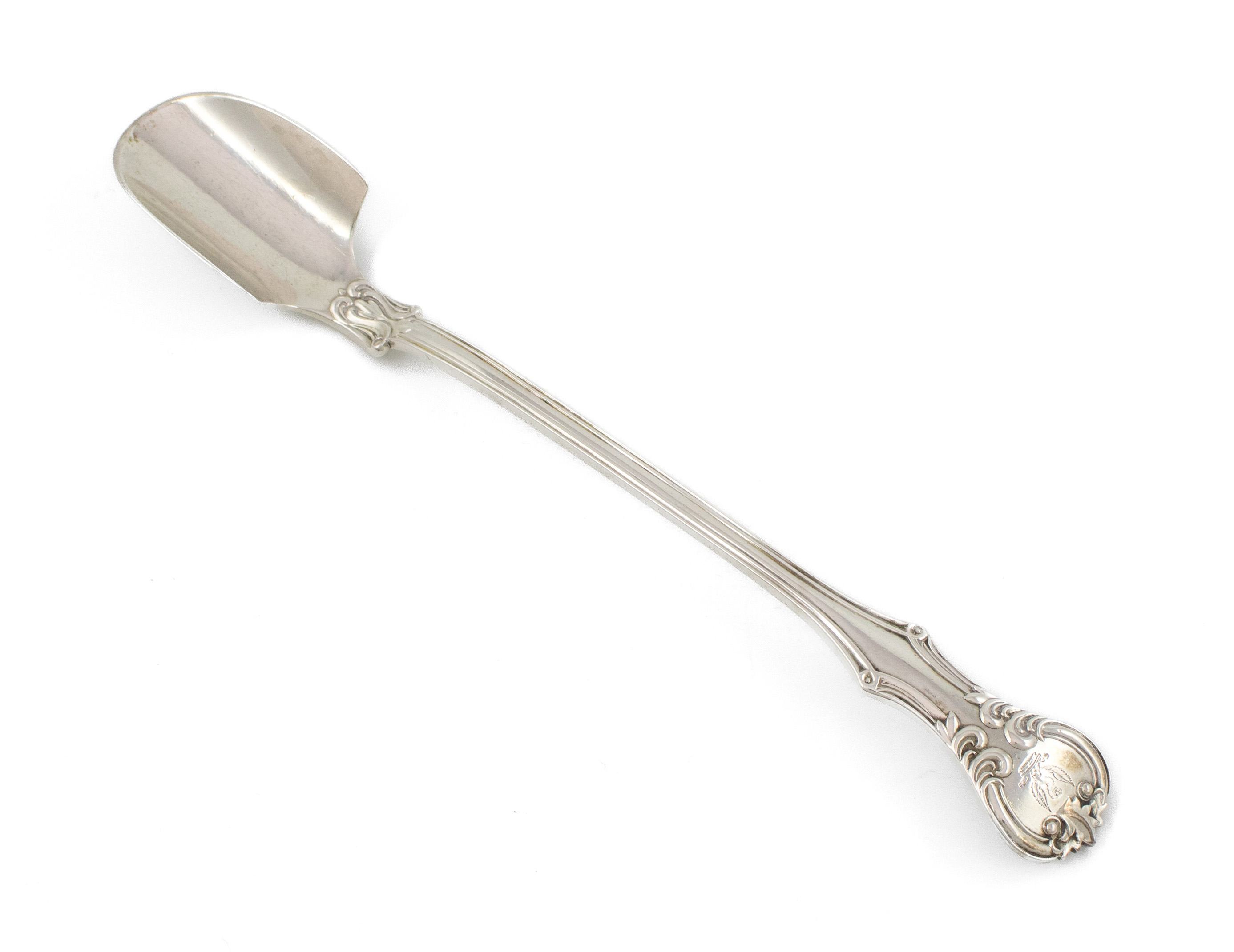 A Victorian silver Victoria pattern stilton scoop,