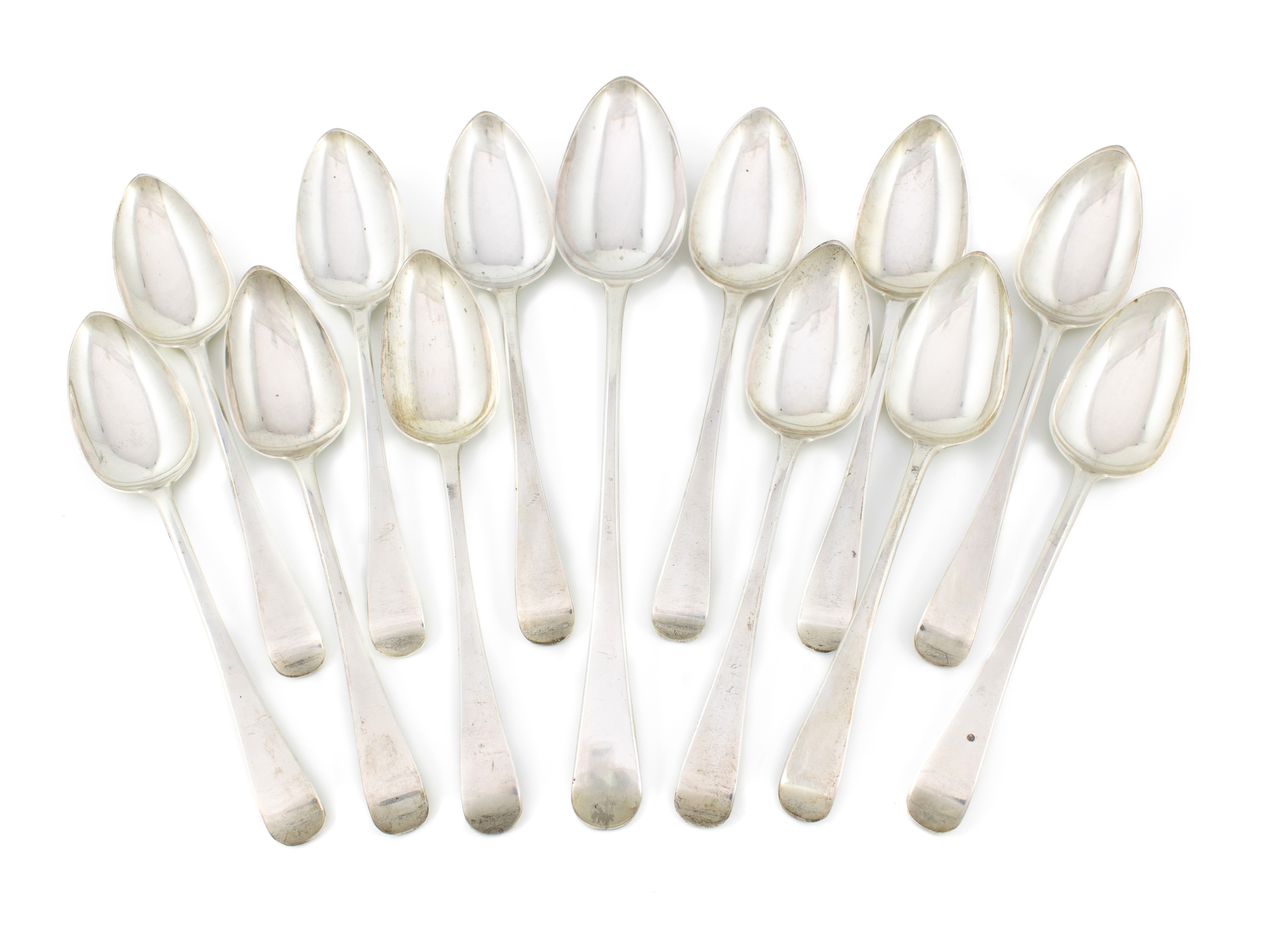 A matched set of twelve George III silver Old English pattern tablespoons.
