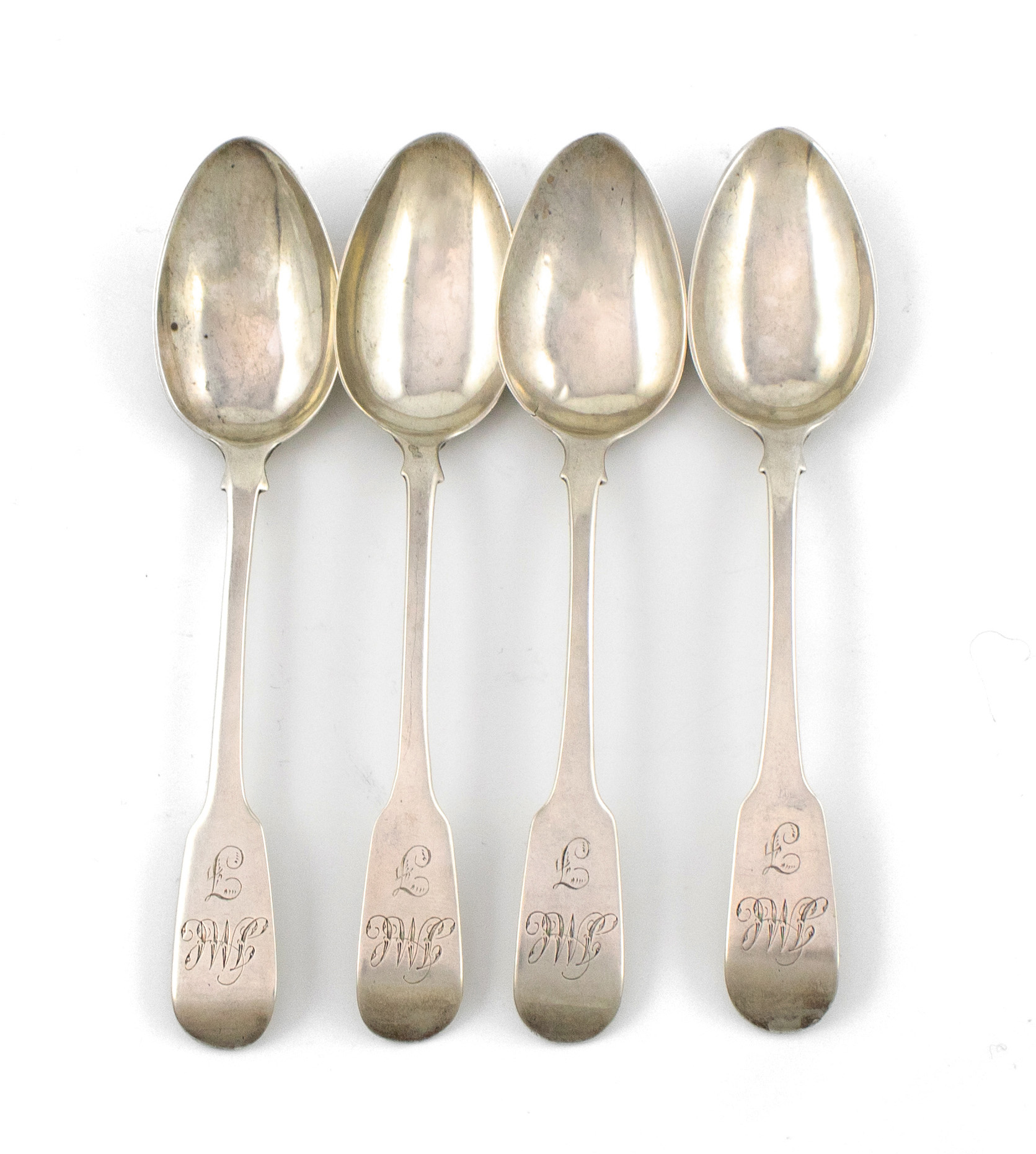 Four early-19th century silver Cape Fiddle pattern teaspoons,