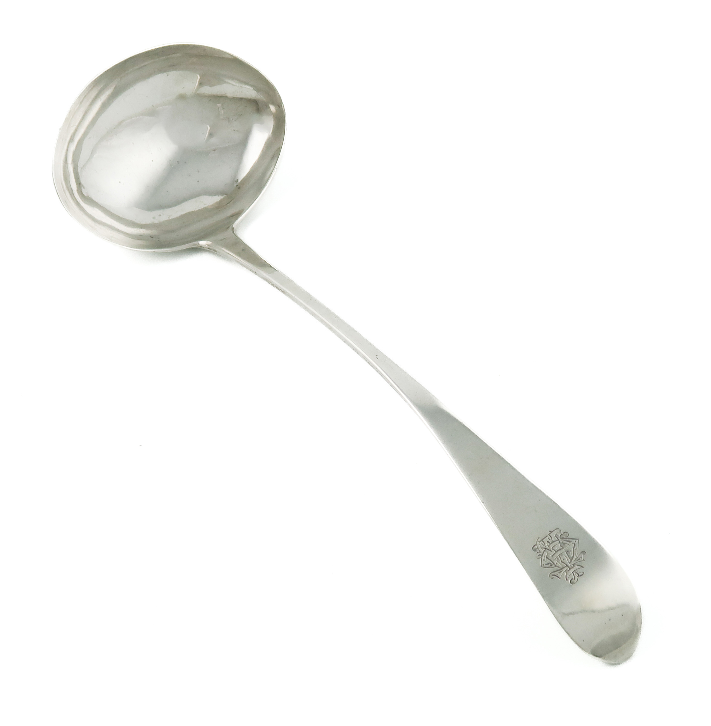 A George III Irish provincial silver Celtic Point pattern soup ladle,