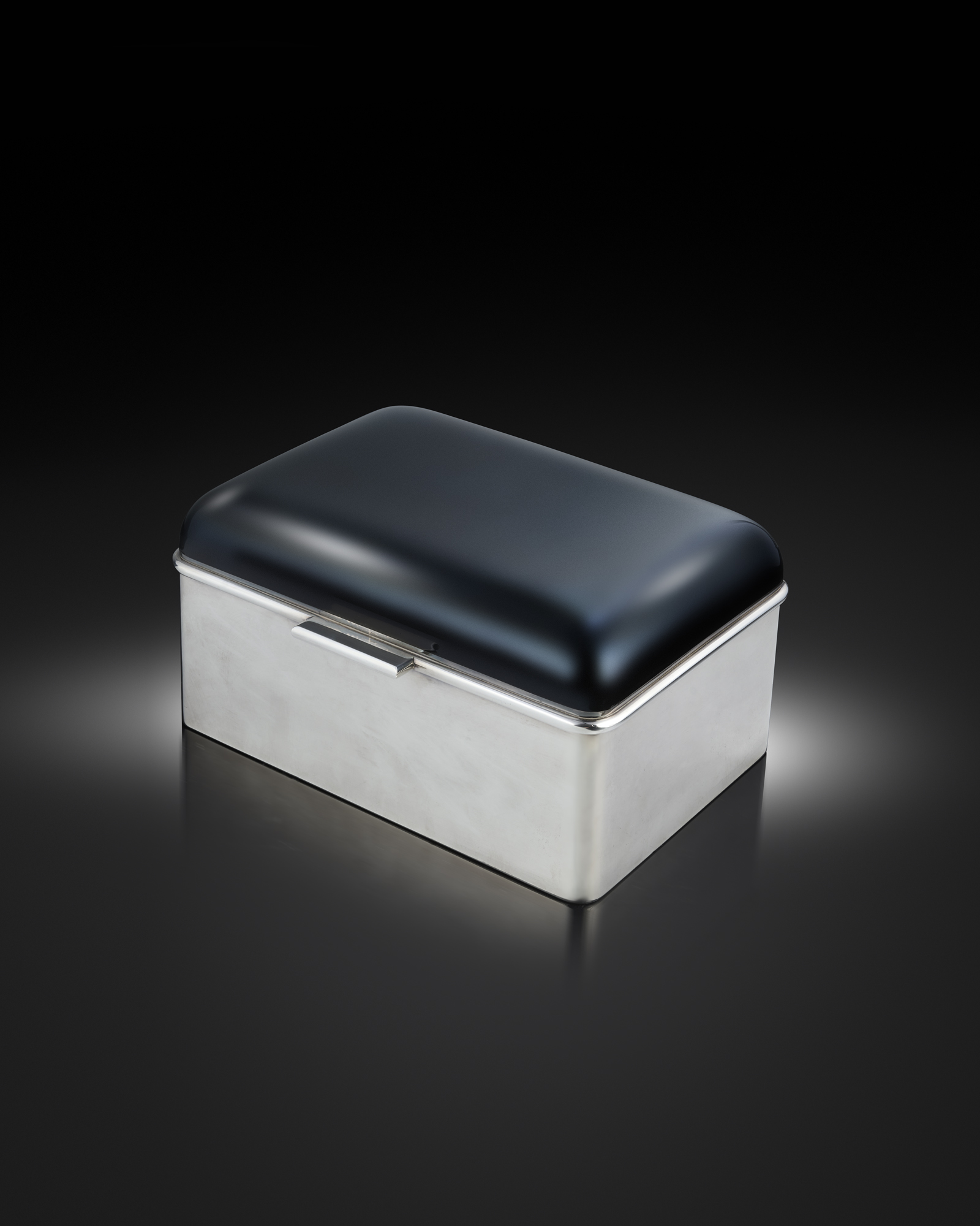 Φ By Gerald Benney, a modern silver and enamel cigar humidor,