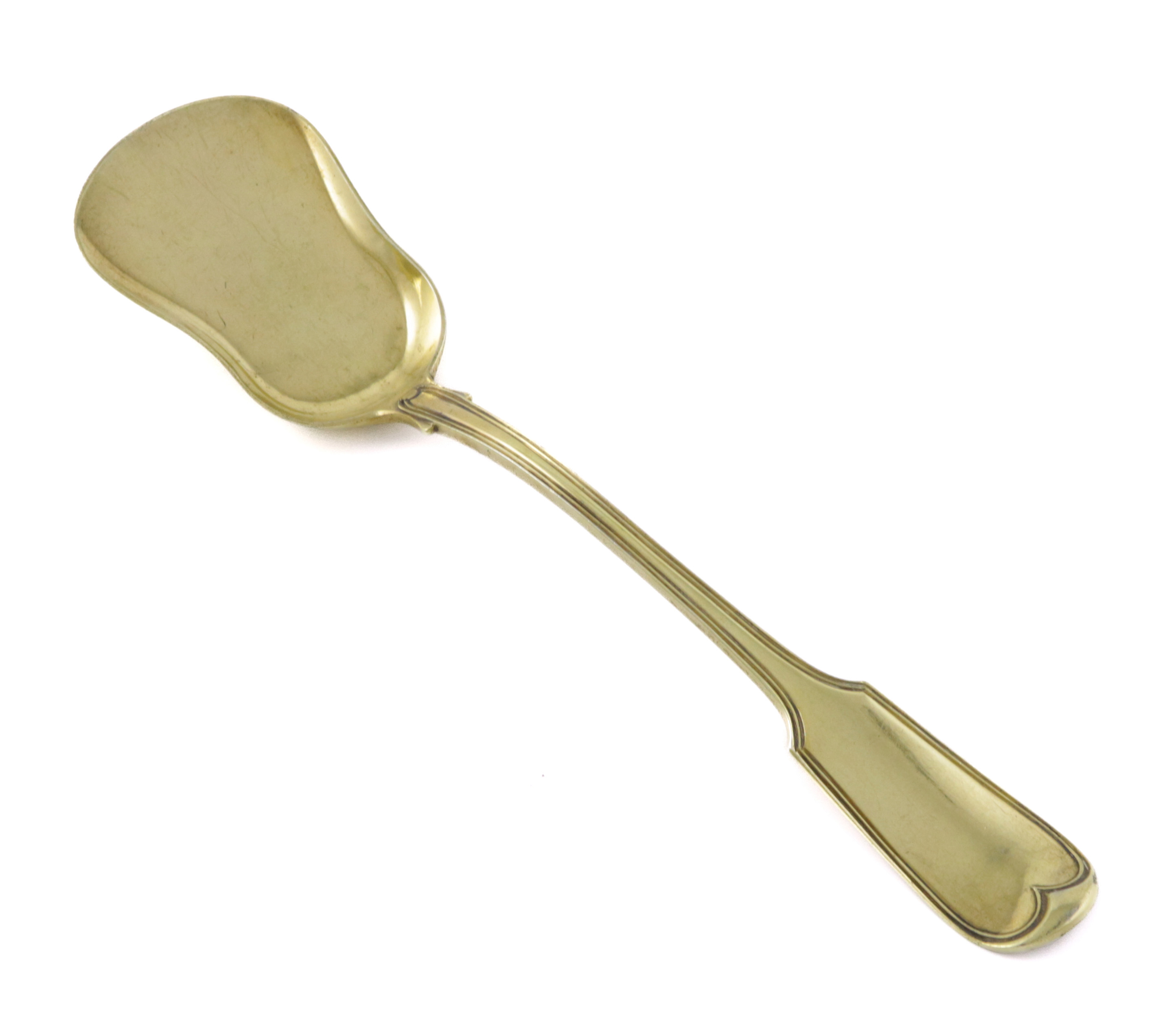 A George IV silver-gilt Fiddle and Thread ice cream spade,