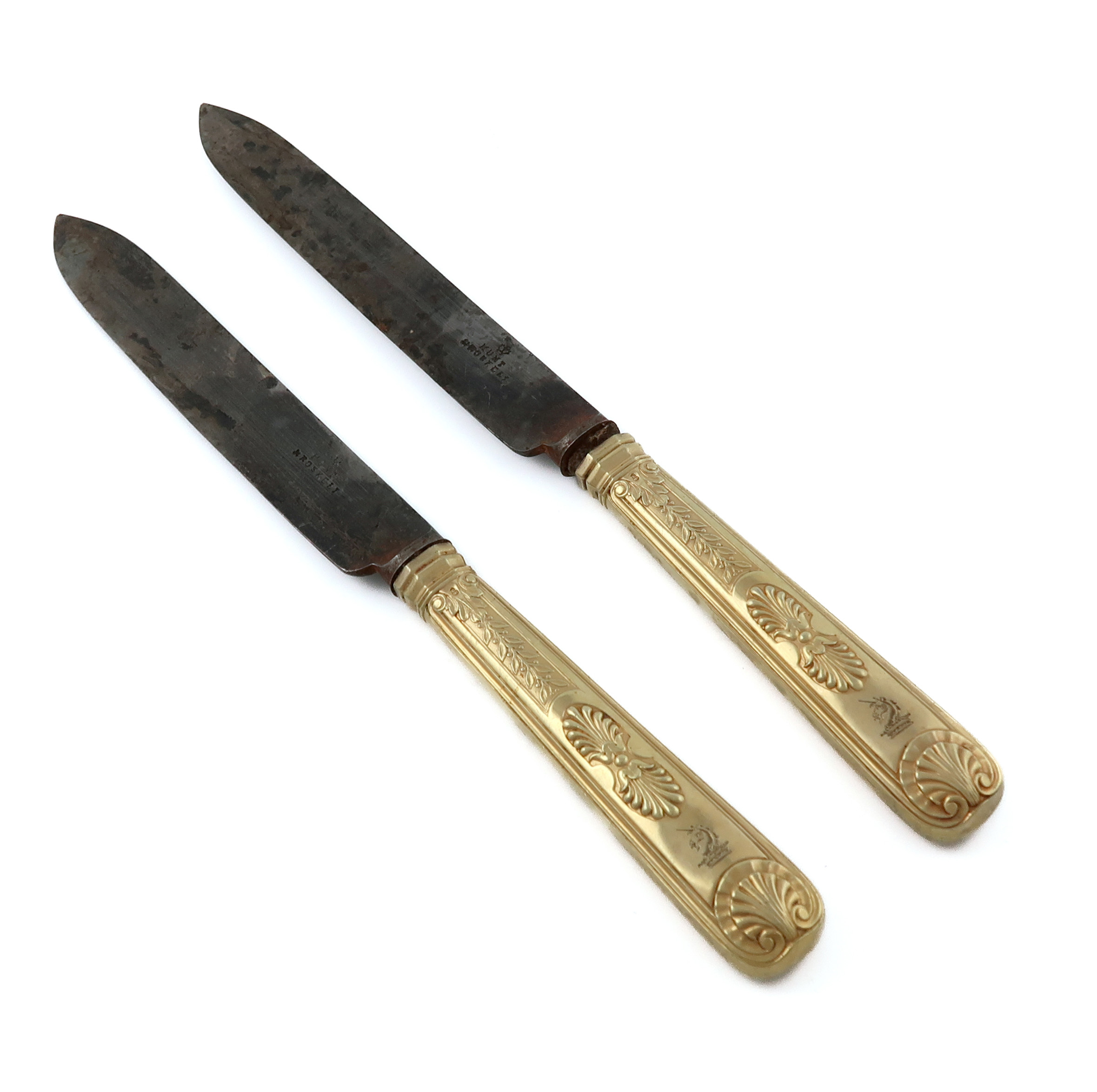 A pair of George III silver-gilt handled King's Pattern carving knives,