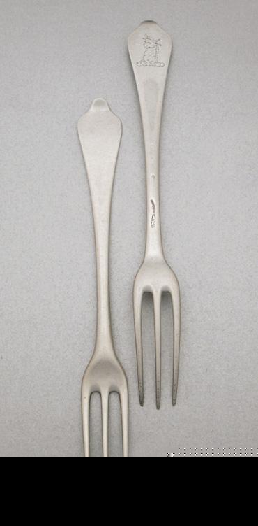 A set of six Queen Anne three-prong forks, of intermediate size, crested, maker John broake, London 1703, 7oz. (6)