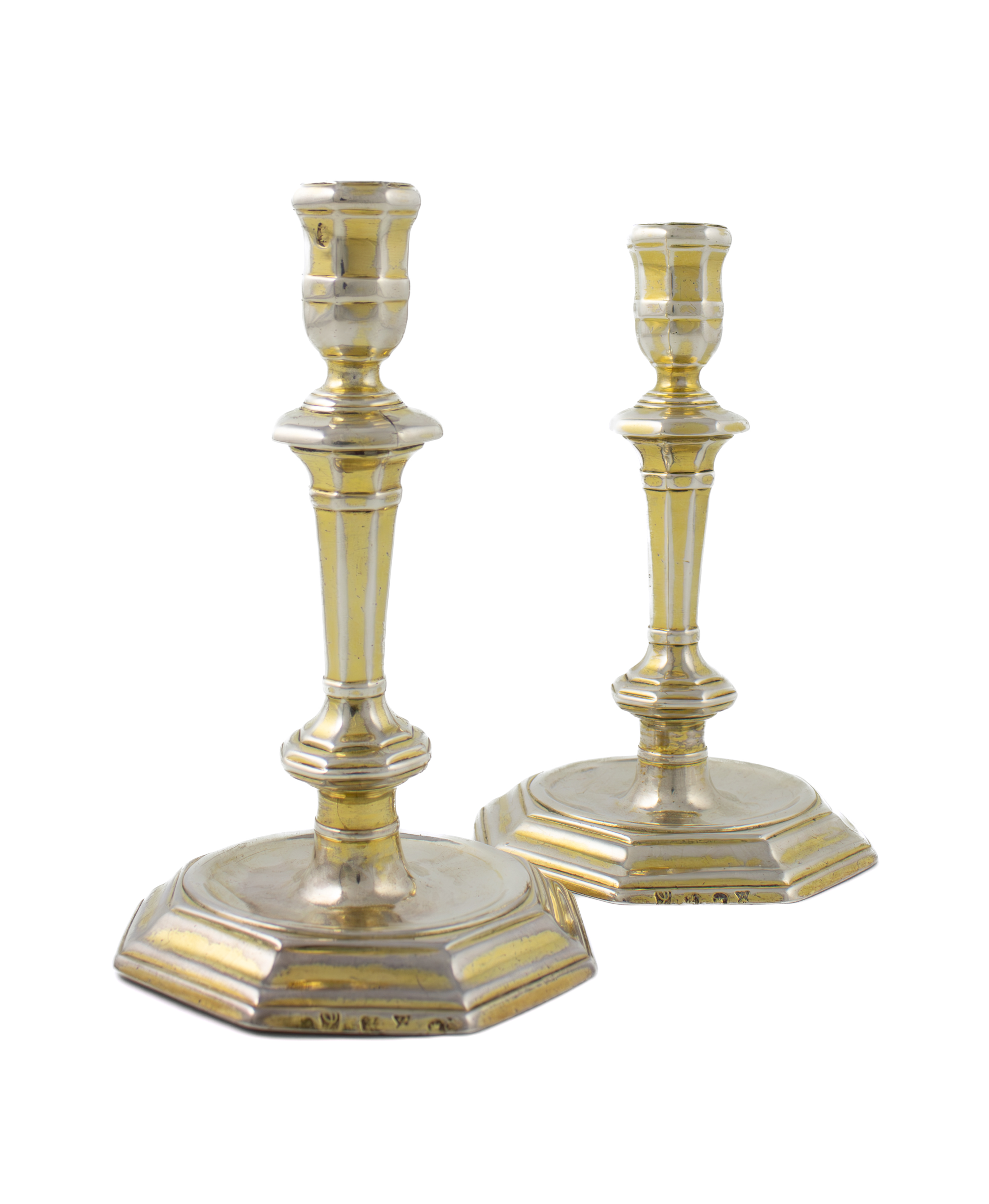 A pair of Queen Anne silver-gilt candlesticks,