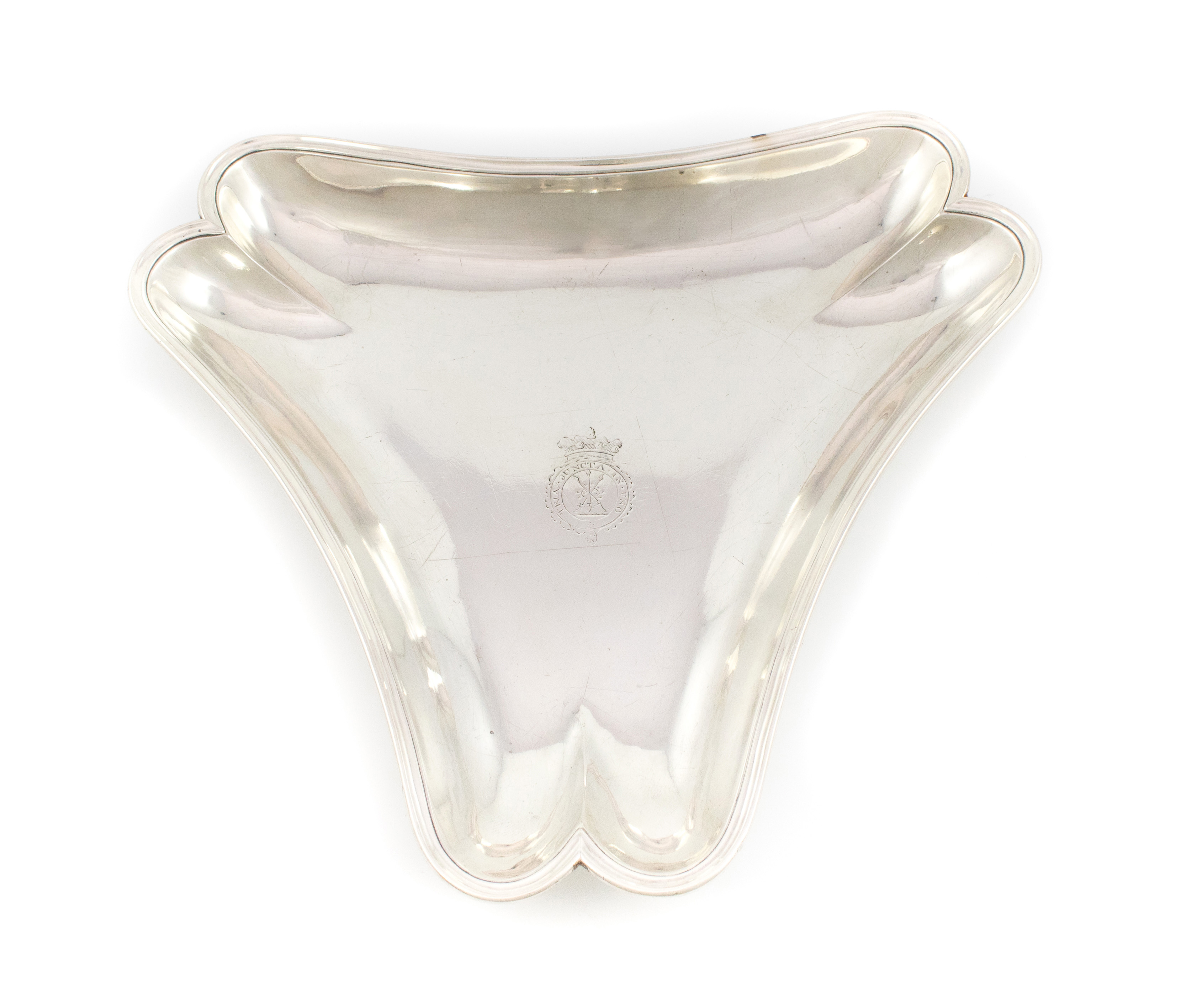 A George III silver triangular serving dish,