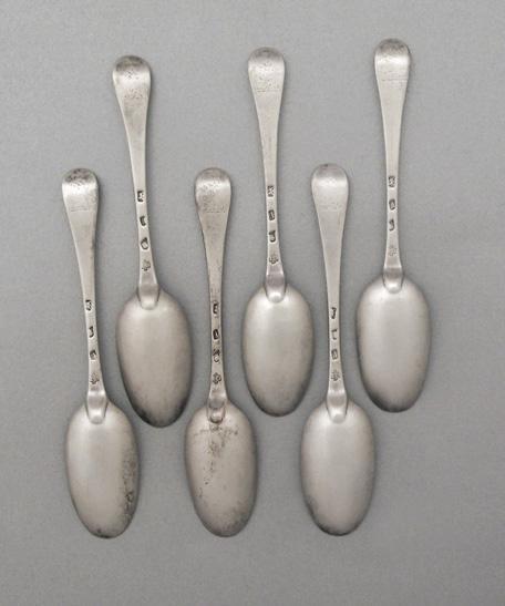 A set of six George I tablespoons, crested, maker Charles Jackson, London 1726, 11.5oz. (6)
