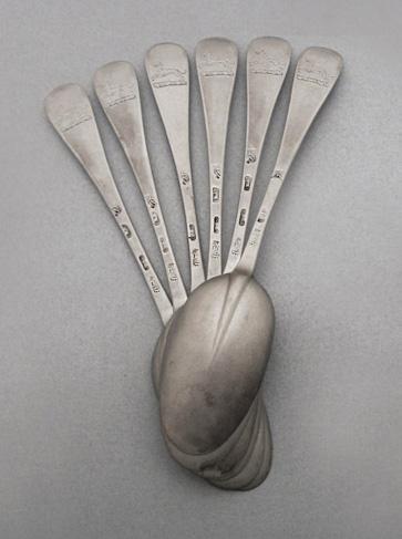 A set of six Queen Anne Hanoverian pattern dessert spoons