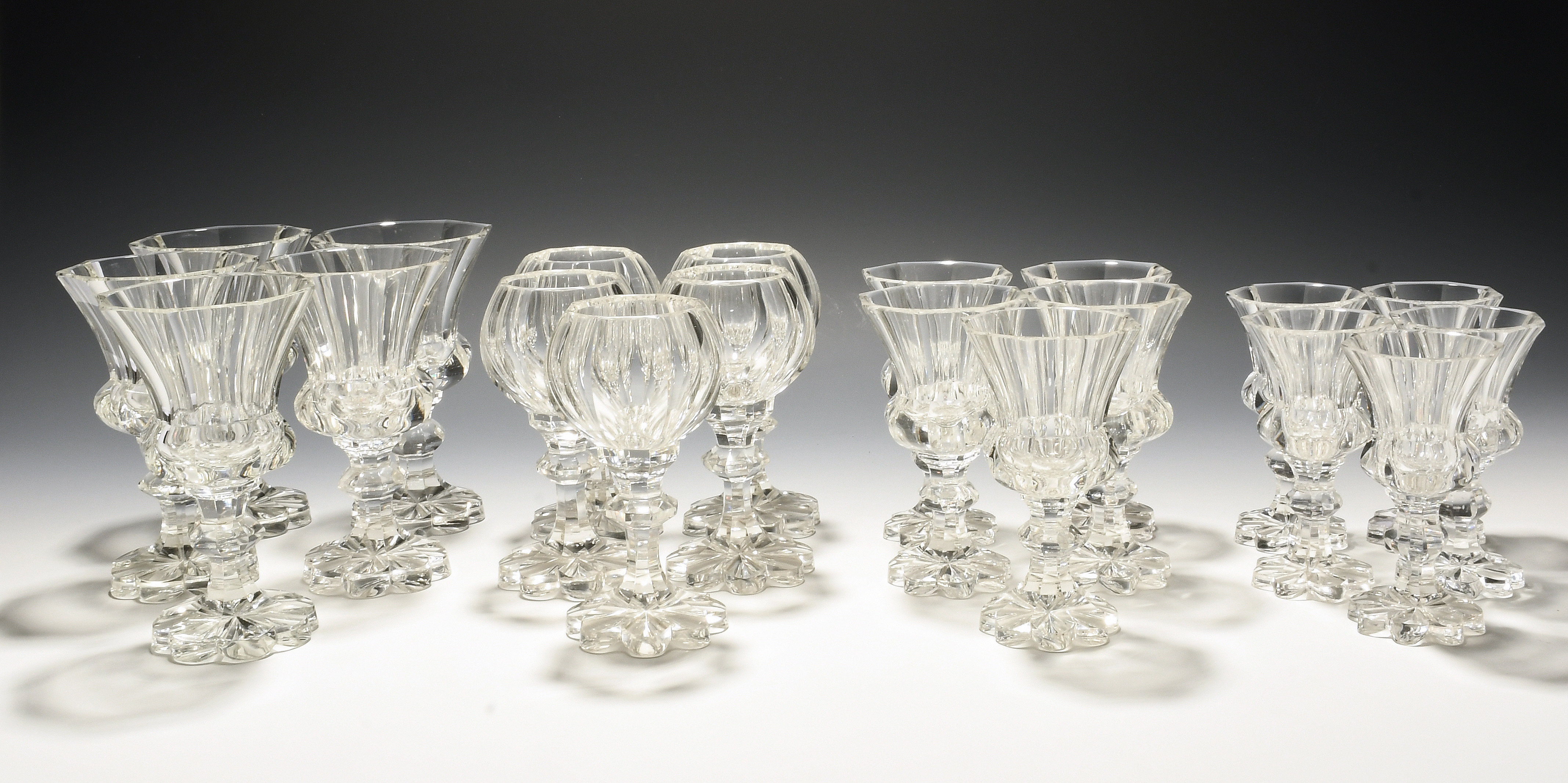 A large suite of glass, 19th century, with octagonal cut bowls raised on knopped faceted stems over