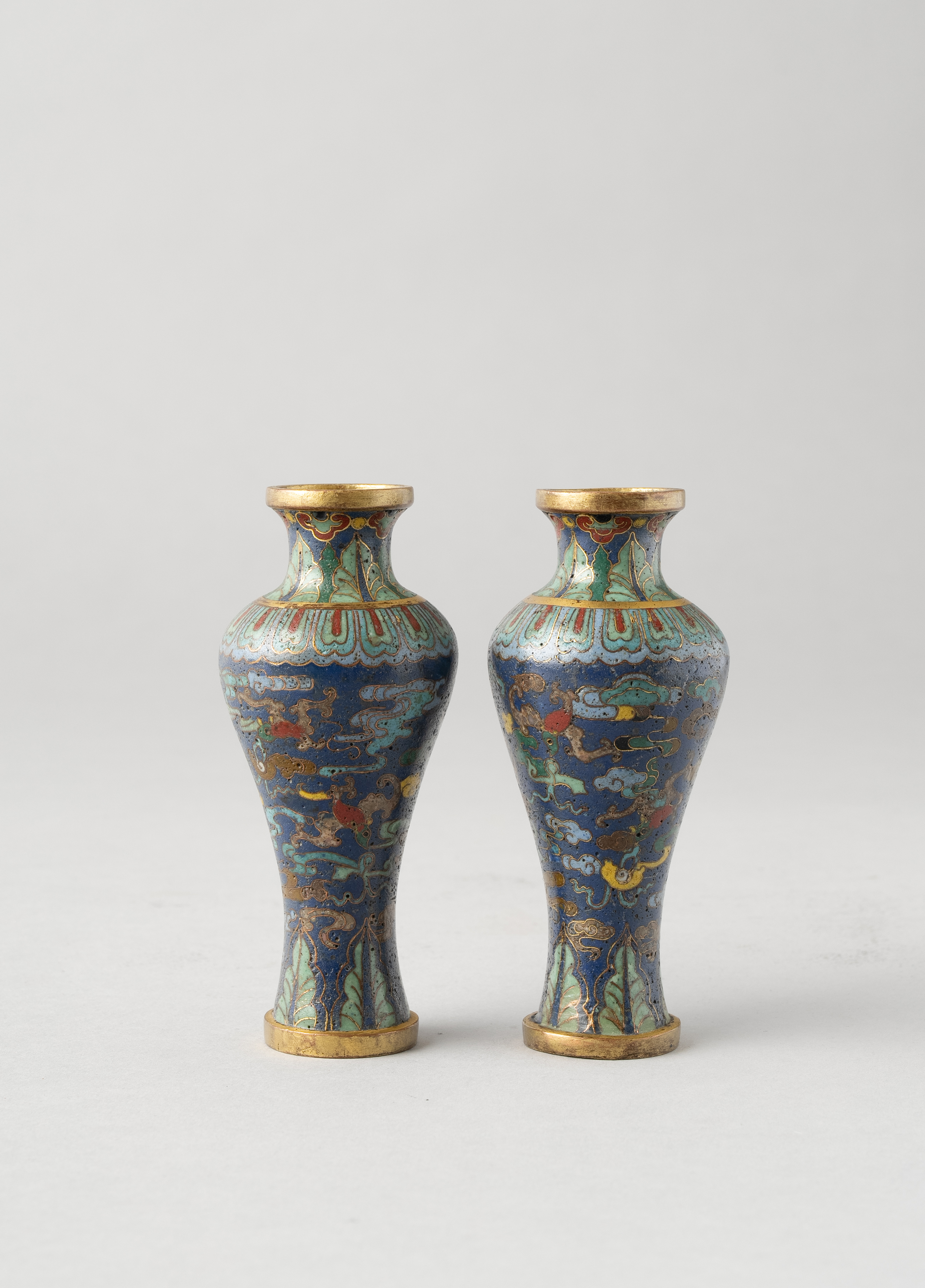 十八世紀 銅胎掐絲琺瑯五福如意瓶 一對