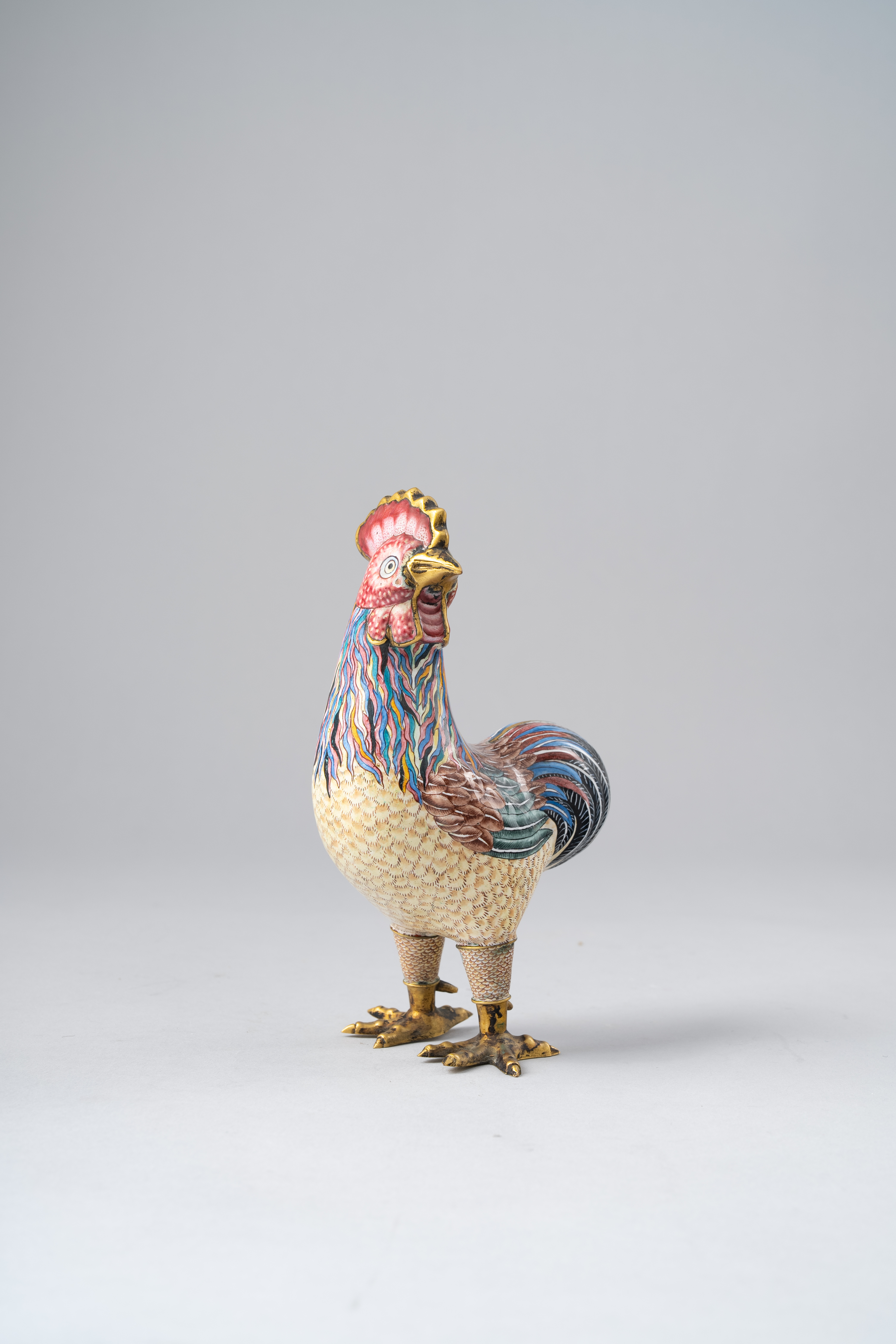 A CHINESE CANTON-PAINTED ENAMEL MODEL OF A COCKEREL