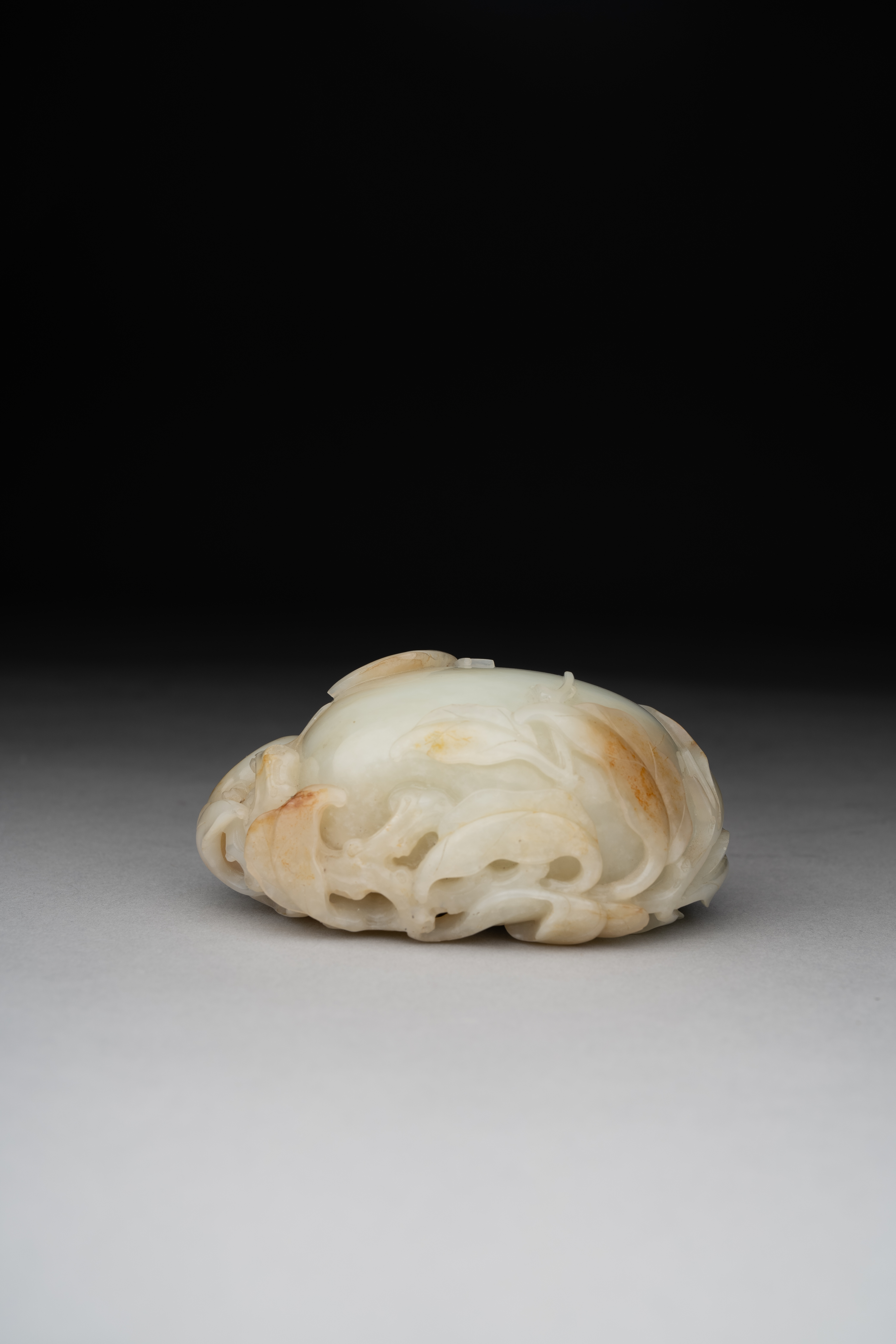 The pomegranate is an auspicious motif in China, its many seeds making it a symbol of fertility and abundance. The fruit is often depicted with a section of skin peeled back to show the numerous seeds inside, as seen in the piece offered here. This image forms the rebus liukai baizi, or 'the pomegranate opens revealing one hundred sons', conveying the wish for many offspring. For a related white jade pomegranate carving, see the Compendium of Collections in the Palace Museum: Jade, vol.9, p.172, no.162. The additional element of the cicada further enhances this meaning, as the image of the insect high up in tree canopies emitting its calling song is referred to as yiming jingren, comparing it to someone unknown who goes on to achieve great fame with an impressive feat. Hence, the piece offered here also carries the connotation of wishing that those many sons may go on to achieve greatness in their lives.