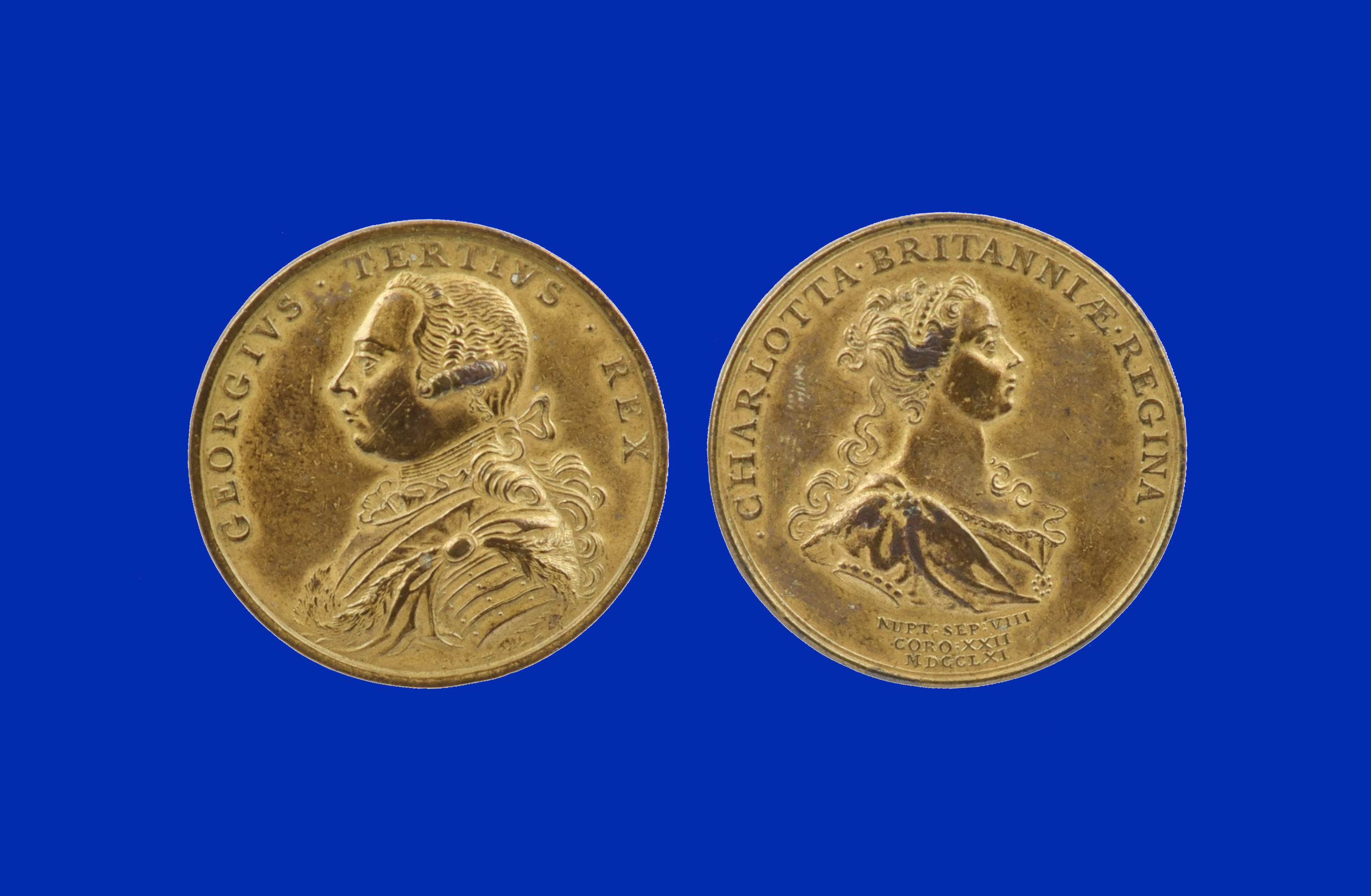 George III, coronation 1761, a copper or pinchbeck medal, unsigned (T. Pingo), armoured bust left, rev. bust of Queen Charlotte right, 41mm (E 692), good very fine.