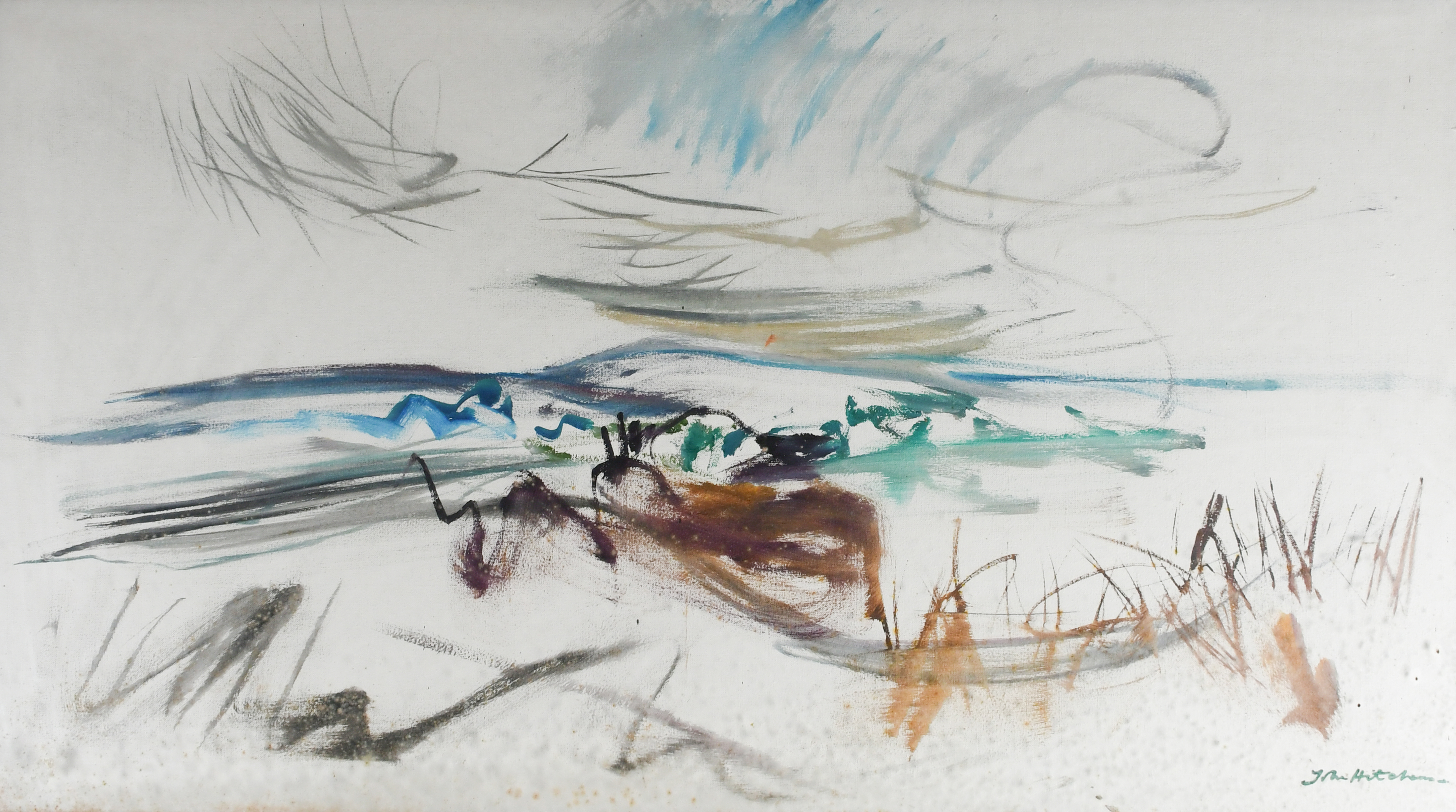 Signed John Hitchens (lower right), and further signed, dated and inscribed Wild Pastures/1963/John Hitchens (to reverse)