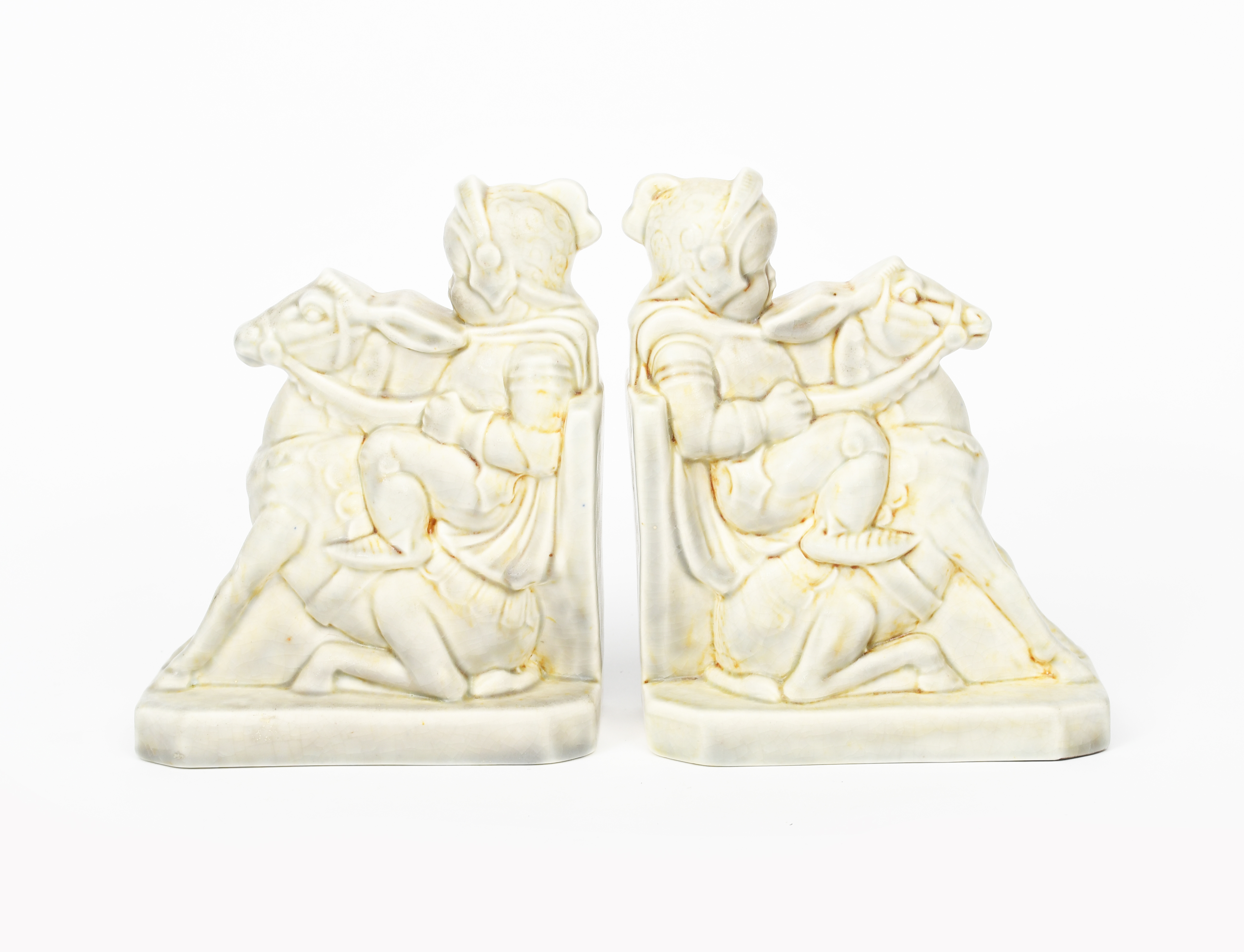 A pair of Pilkington's Royal Lancastrian The Boy on Donkey book ends designed by David Evans, each